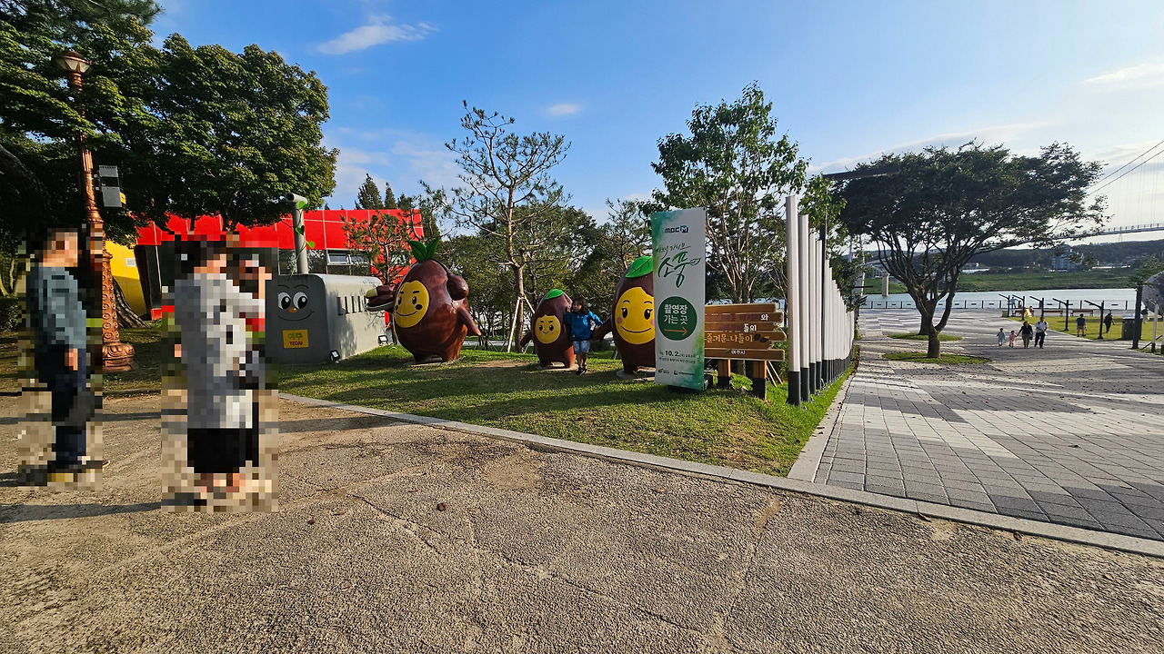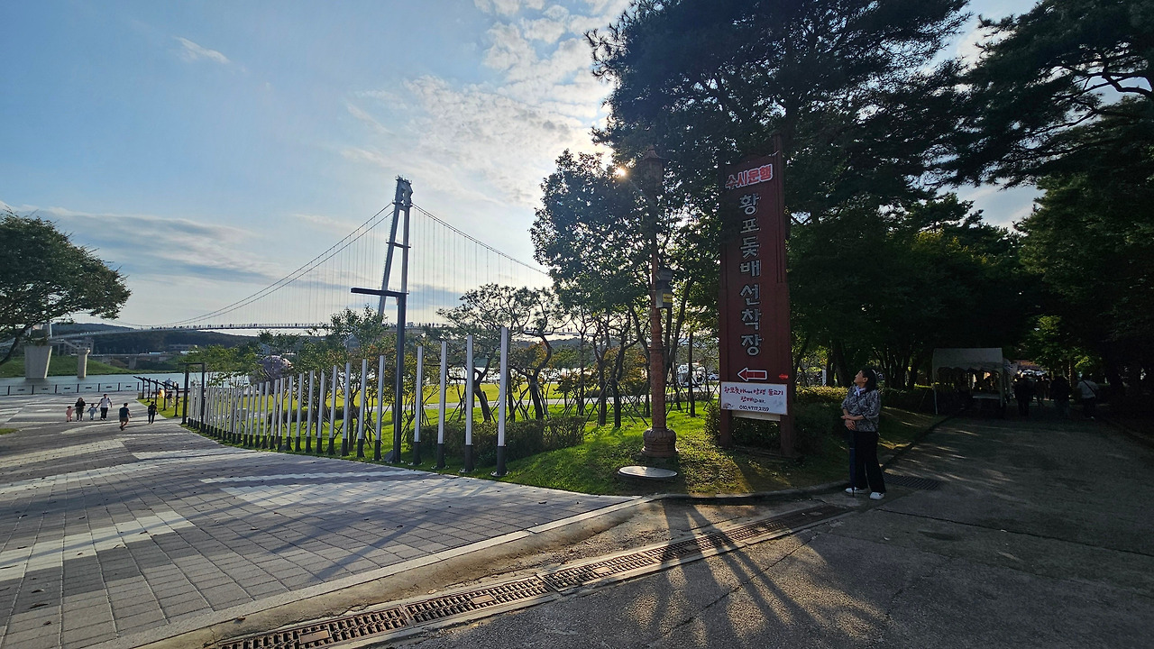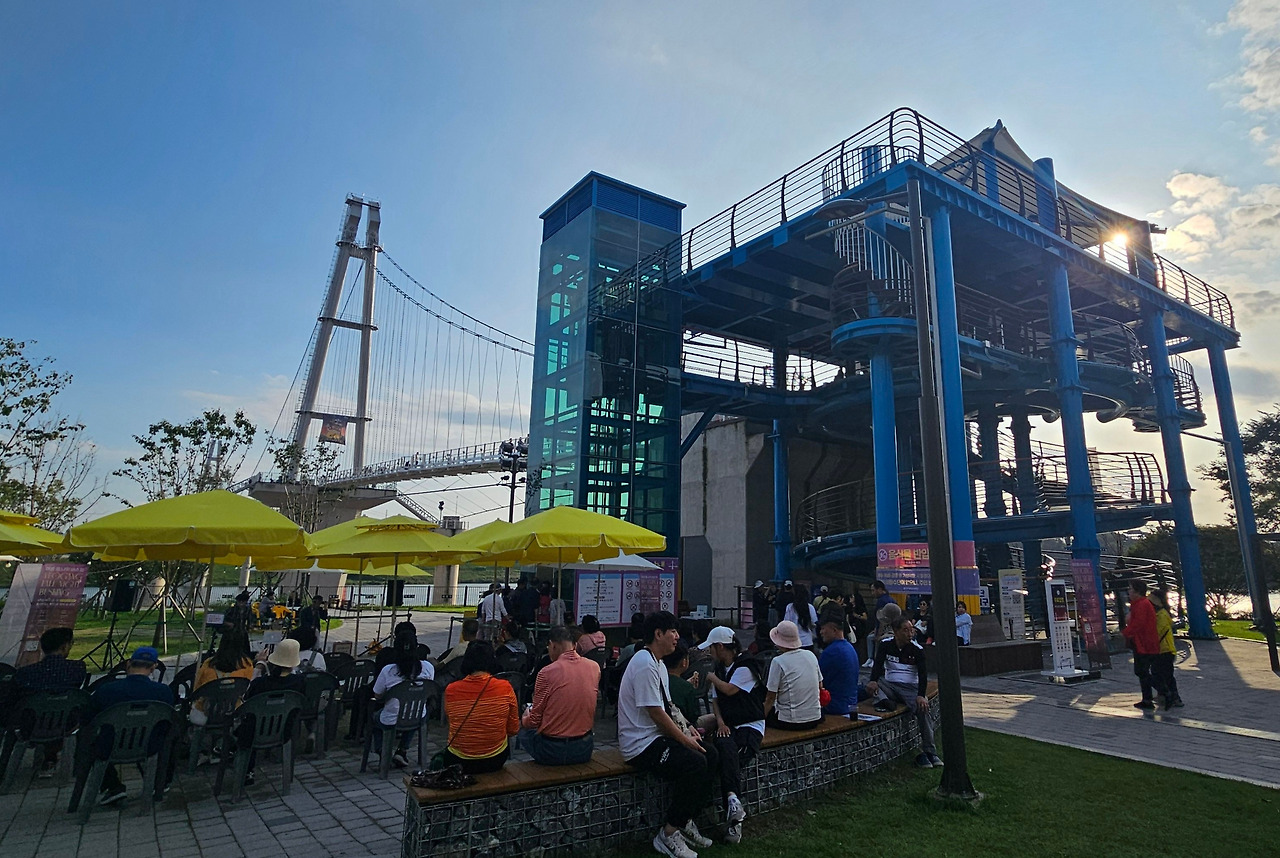 출렁다리 주변 행사장에서는 추석맞이 노래자랑이 진행 중이었다.