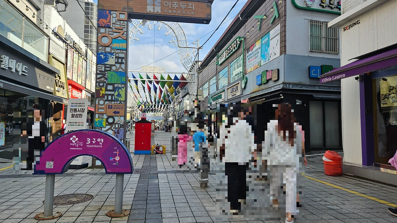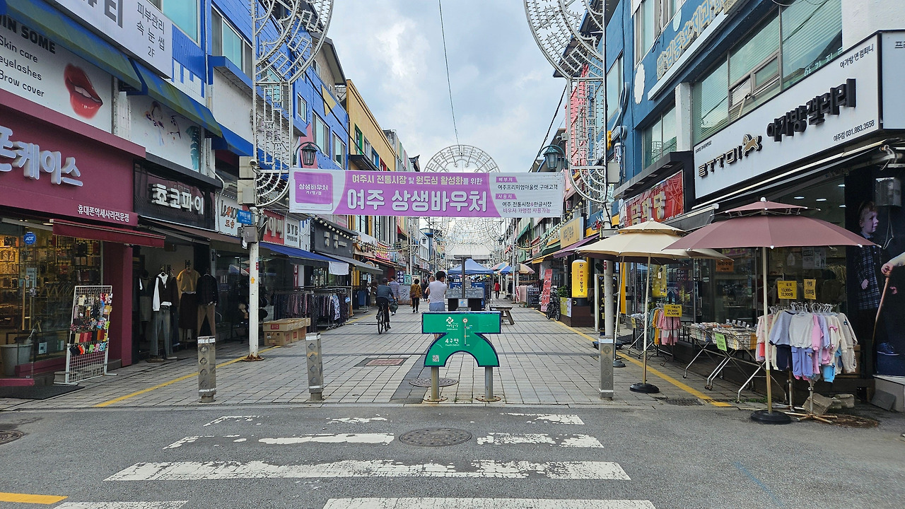 젊은이들 몇몇은 시장 길바닥 위에 주저앉아서 의자에 앉은 친구와 담소를 나누고 있다. 자연스럽다. 특히 외국 젊은이들이 많이 보여 국제화 시대라는 말이 실감이 났다. 곳곳에 한글 초성이 세워져 있고, 세종대왕의 위상을 체험할 수 있다. 한글 시장 & 세종 시장은 500년 역사를 잇고 있다. 조포나루와 가깝다.