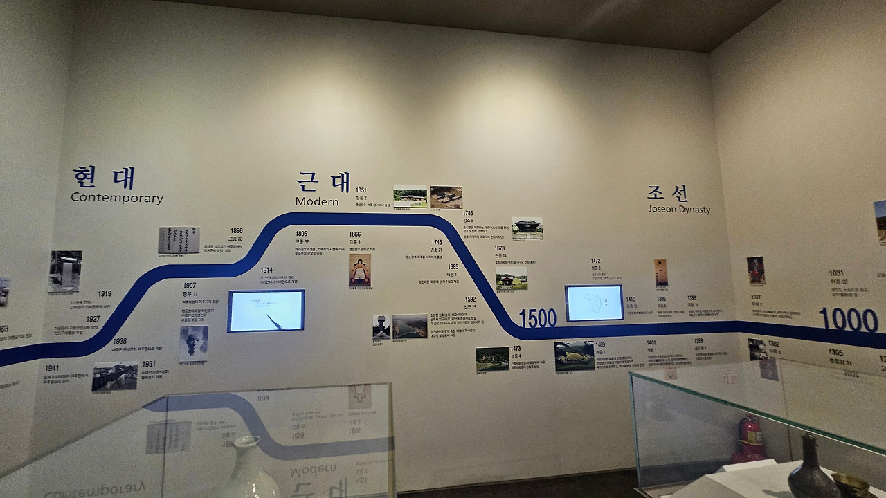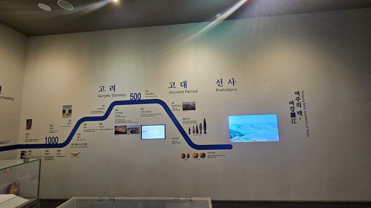 선사 고대 고려 조선 시대와 유물, 인물, 사건들을 결합한 그래프에서 여주 역사를 한눈에 볼 수 있다.