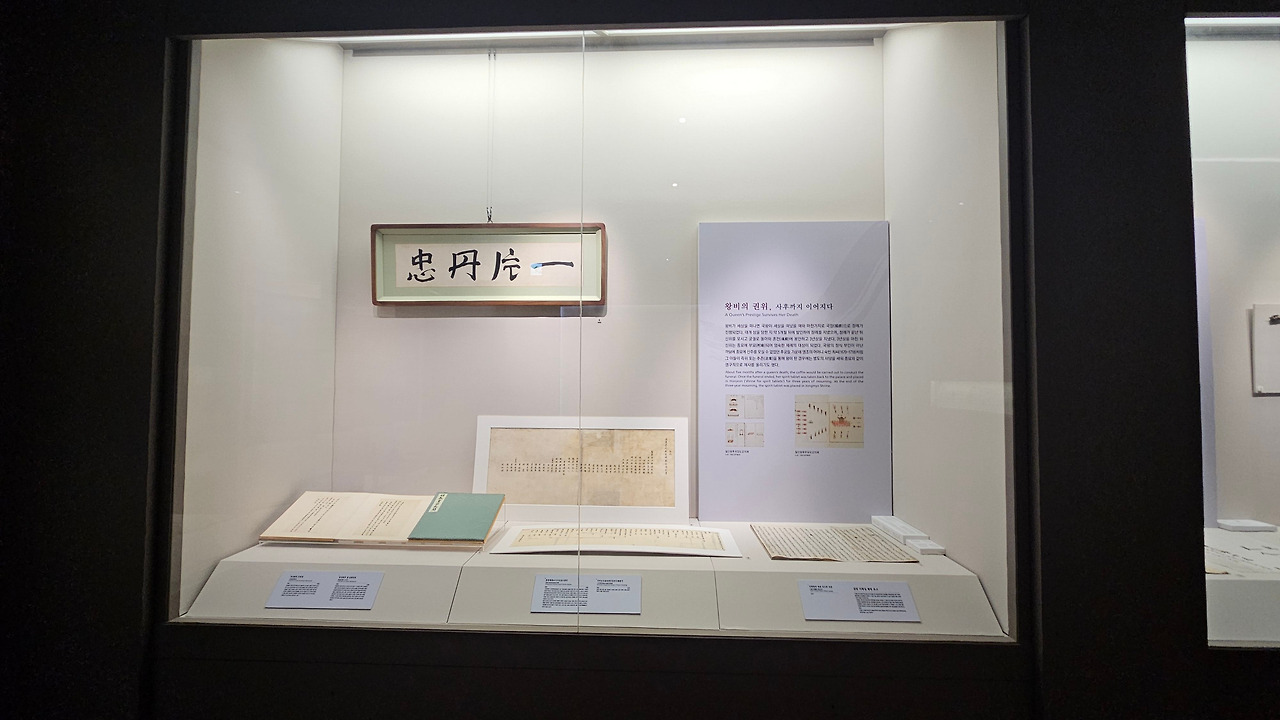 명성황후의 친필 유묵으로 각 폭에 한 자씩 대자로 ‘一片丹忠’을 적었다. 명성황후가 1885년 12월 21일 ‘일편단충’ 세 본을 써서 김규복(金圭復), 김규석(金圭錫), 황윤명(黃允明) 등 3명의 내시에게 각각 1본씩을 주었다. 발문의 내용에 따르면 임오군란의 과정에서 3명의 내시들이 왕과 왕비를 호위했고, 이 공을 치하하기 위해 참된 충성이라는 의미의 ‘단충’을 담아 각자에게 하사했다. 범상치 않은 필치로 힘차고 굳센 필력이 돋보인다.