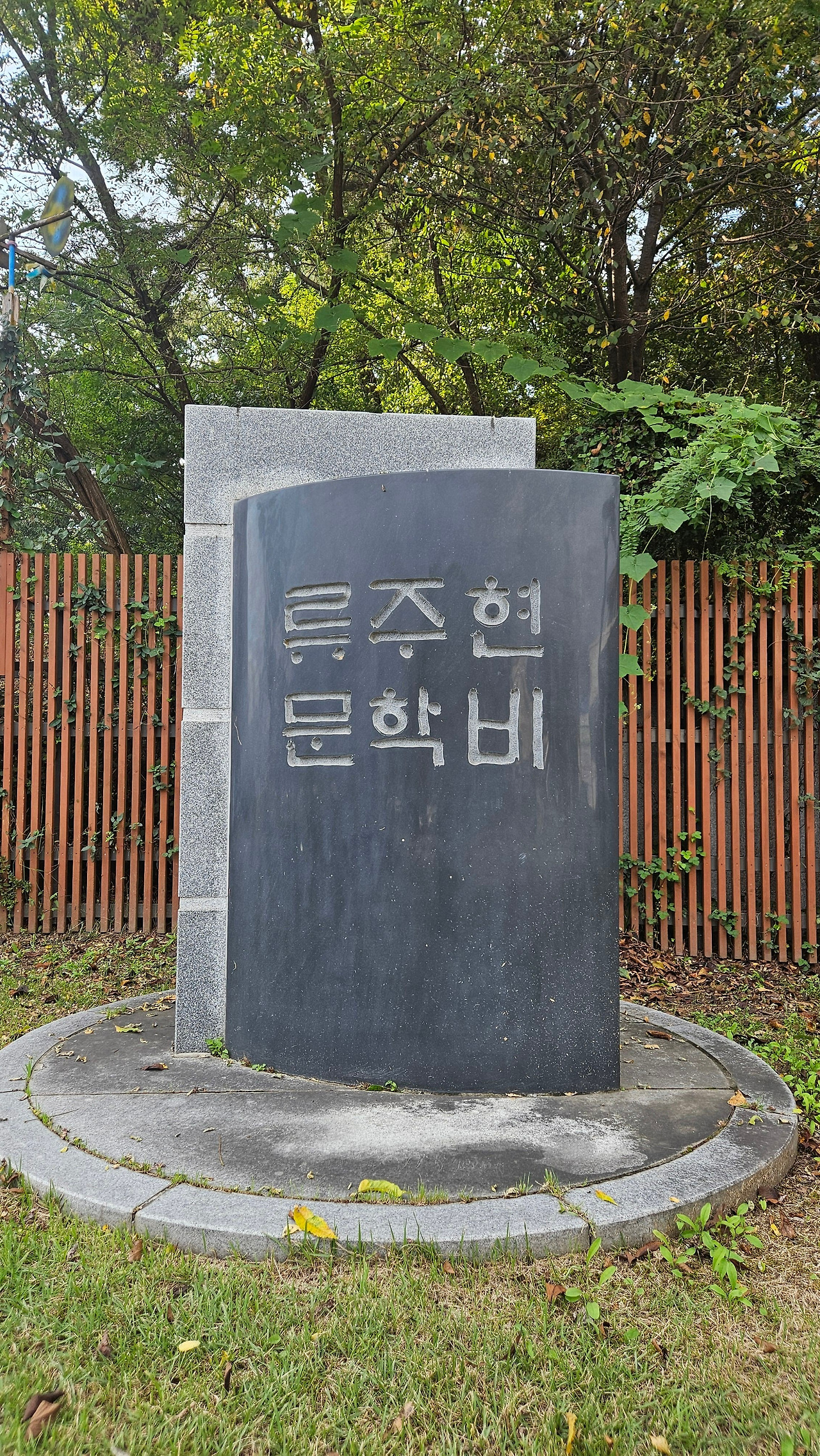 여주 출신 현대 소설가인 묵사(默史) 류주현(1921~1982) 선생의 문학비이다. 비의 뒷면에는 구상(具常)이 짓고 원중식(元仲植) 선생이 생애를 기록하였다. 1996년 야외전시장에 건립하였다.