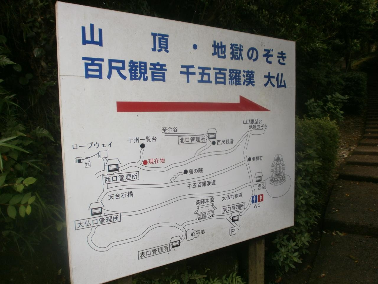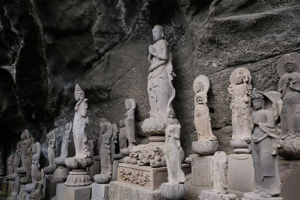 석재 예술가들이 석재 표면을 파고들어 간 다음 직각으로 자른 돌로 둘러싸인 거대한 관음상을 표현했다. 관음 동상은 약 30.3m의 거대한 동상이다. 눈 위의 지옥 엿보기(地獄のぞき) 바위가 한눈에 같이 들어온다.