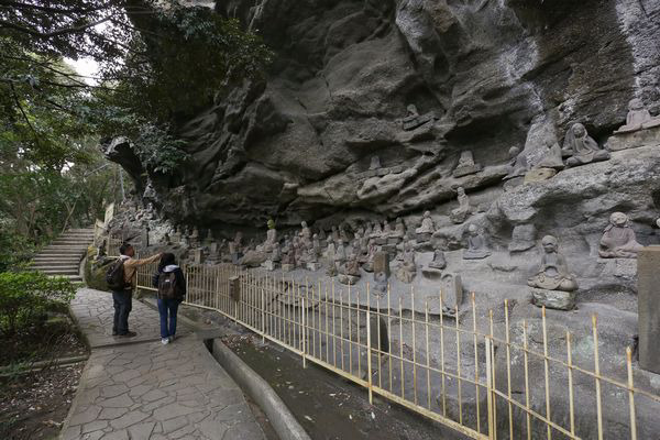 주요 경로는 다음과 같다. 요코하마 간나이역(関内駅)->구리하마역(京急久里浜駅)->꽃의 나라 공원(くりはま花の国)->구리하마(久里浜)항->금곡항 (金谷港, 카나야 항)->도보로 이동 거산(鋸山, 노고기리 야마, 표고 329m) 등산-> 암 무대/석절장적(岩舞台/石切場跡)->서국관음(西国観音, Saigoku Kannon)->지옥 산정 전망대(지옥 엿보기, 地獄のぞき)->통천관(通天関)->천오백 나한도(千五百羅漢) / 石段 / 木根道)-> 日本寺 大仏(にほんじだいぶつ)이다.