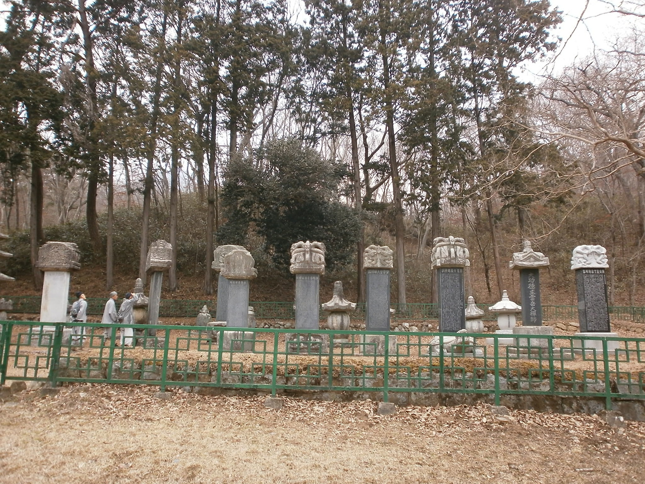 스님들이 상월 대사 승탑을 유심히 살펴보고 있다