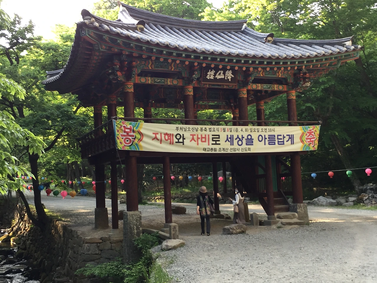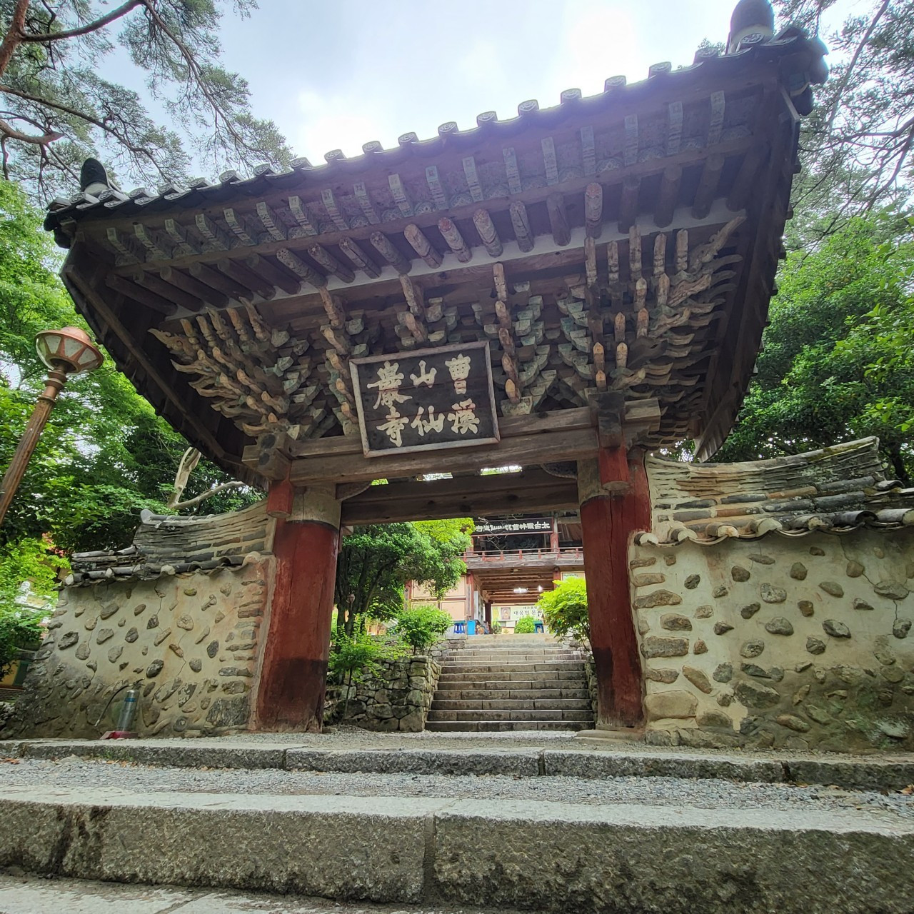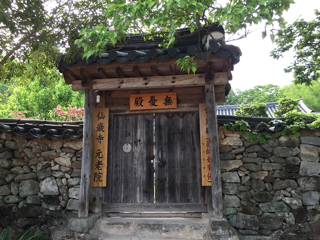 일주문은 출입문처럼 좌우에 야트막한 담장 사이에 있다. 몇 개의 계단을 올라간다. 曹溪山 仙巖寺이라는 현판이 있다.