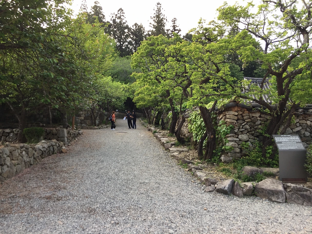 전통 찻집 앞에 삼인당이라는 타원형 연못이 있다. 커다란 계란형 연못 중앙에 섬이 하나 있는 모습이다. 신라 경문왕 2년(862년) 도선국사가 만든 것이라고 한다. 삼인(三印)은 제행무상인(諸行無常印), 제법무아인(諸法無我印), 열반적정인(涅槃寂靜印)의 삼법인을 뜻하는데 불교의 중심사상을 나타낸 것이라고 한다. 근처에 하마비가 있다. 부처님의 자비를 되새기면서, 말에서 내려 걸어서 가라는 표시다.