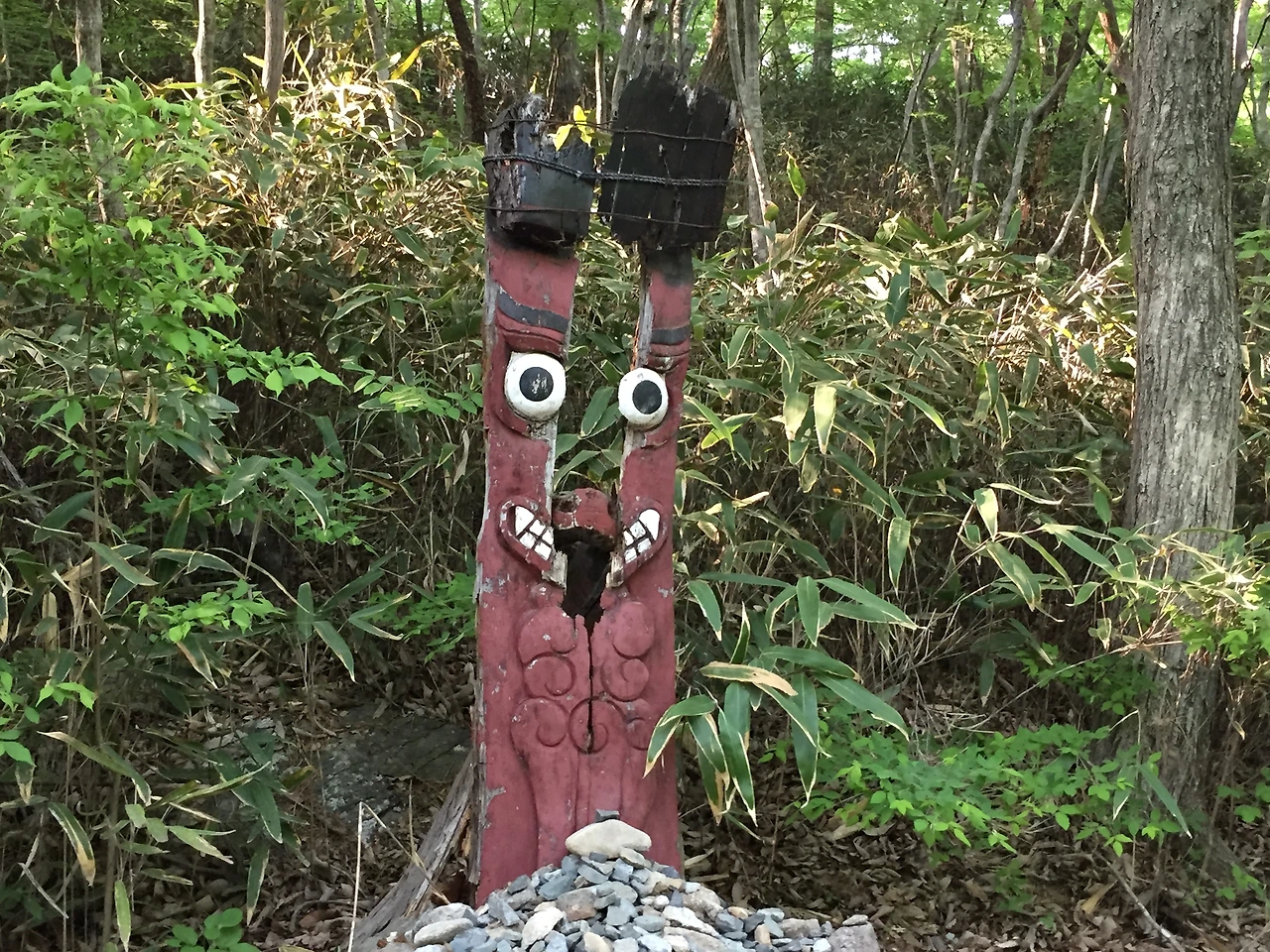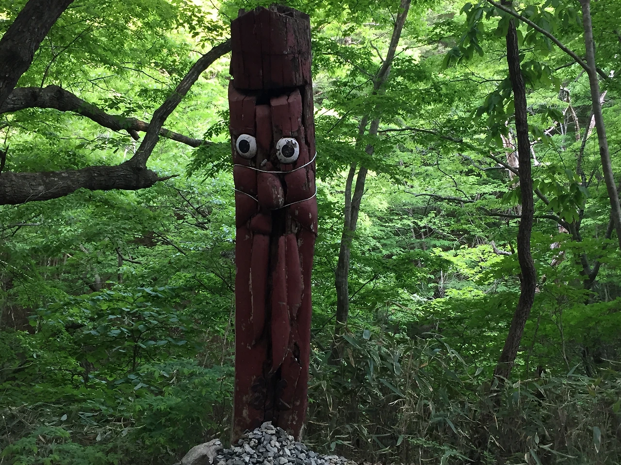 숲길을 걷다 보면 길옆 좌우측에 목장승 두 개가 서 있다. 이 장승들은 1987년에 밤나무로 만든 것으로 두 장승 모두 남자상이라고 한다. 모든 생명을 아끼고 사랑하며 자비를 베풀고, 불법을 수호하고 성불하게 돕는 착한 신의 의미가 있다고 한다. 코부분이 내려앉아, 등신불을 연상시킨다. 오랜 풍상 세월을 견디며 겨우겨우 버티고 서있다. 현재 근처에 돌로 만든 새로운 장승과 함께 서있다.