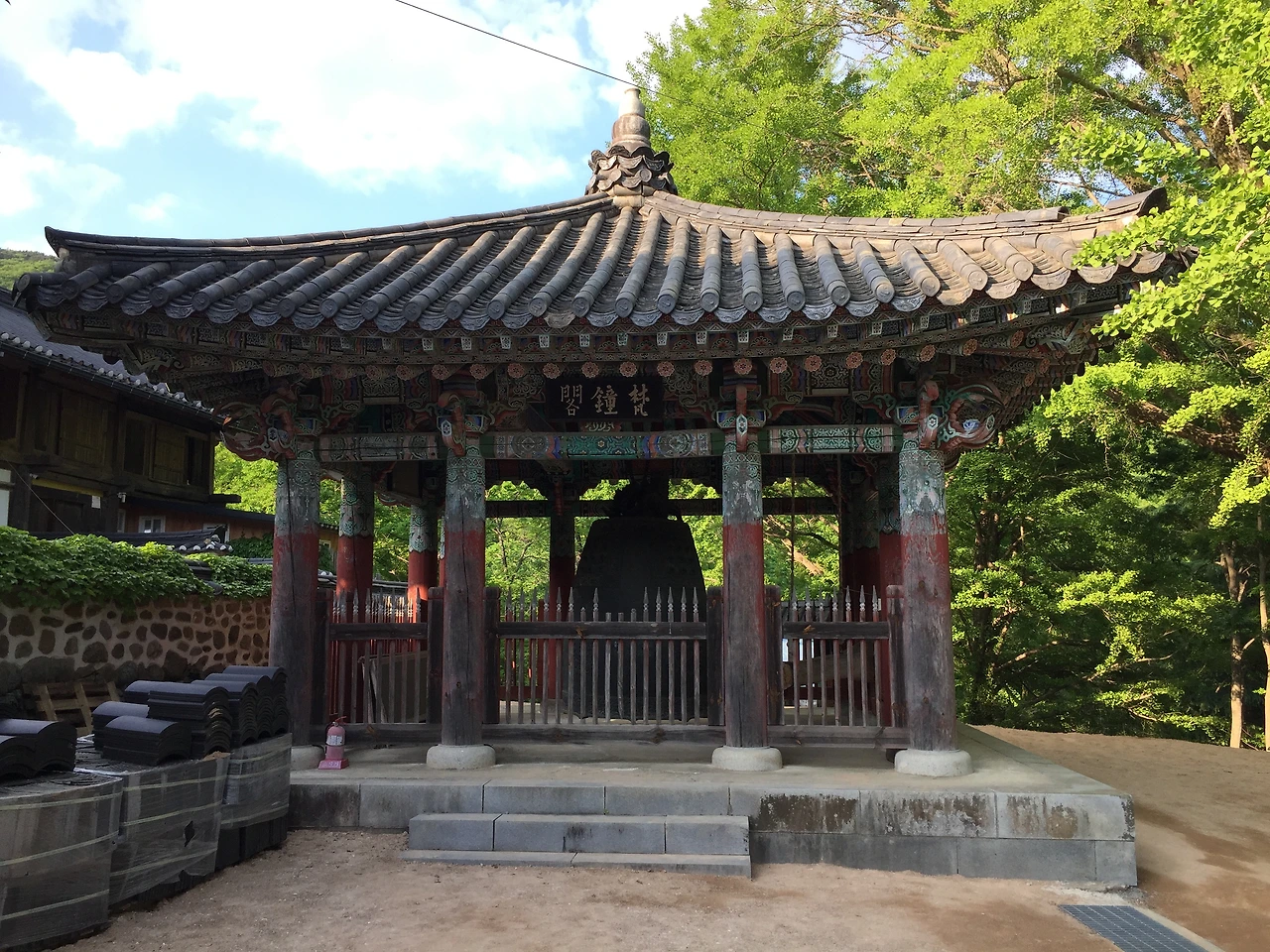 예불 때 치는 범종은 우측에 별도 다른 건물 안에 있다. 오후 6시경에 예불의식이 진행된다.