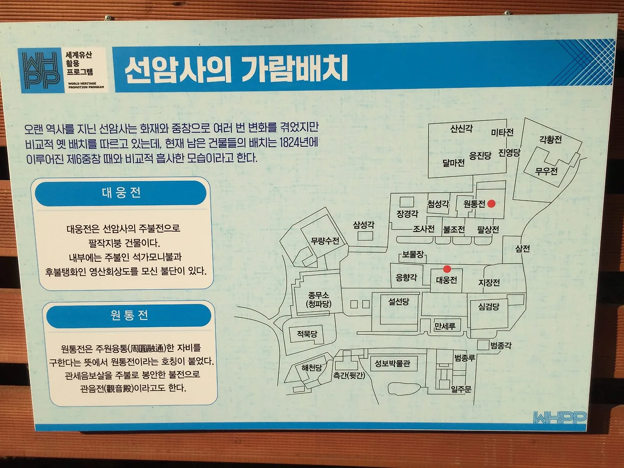 선암사는 조계산(888m)의 동쪽 전남 순천시 승주읍에 있다. 한국불교 태고종 태고총림이다. 선암사라는 이름은 사찰 서쪽 조계산에 신선이 바둑을 두던 평평한 바위가 있기 때문이라 한다. 2018년 유네스코 세계유산위원회에서 '산 사(山寺), 한국의 산지 승원'이라는 명칭으로 문화적 가치를 인정받아 세계문화유산으로 등재되었다.