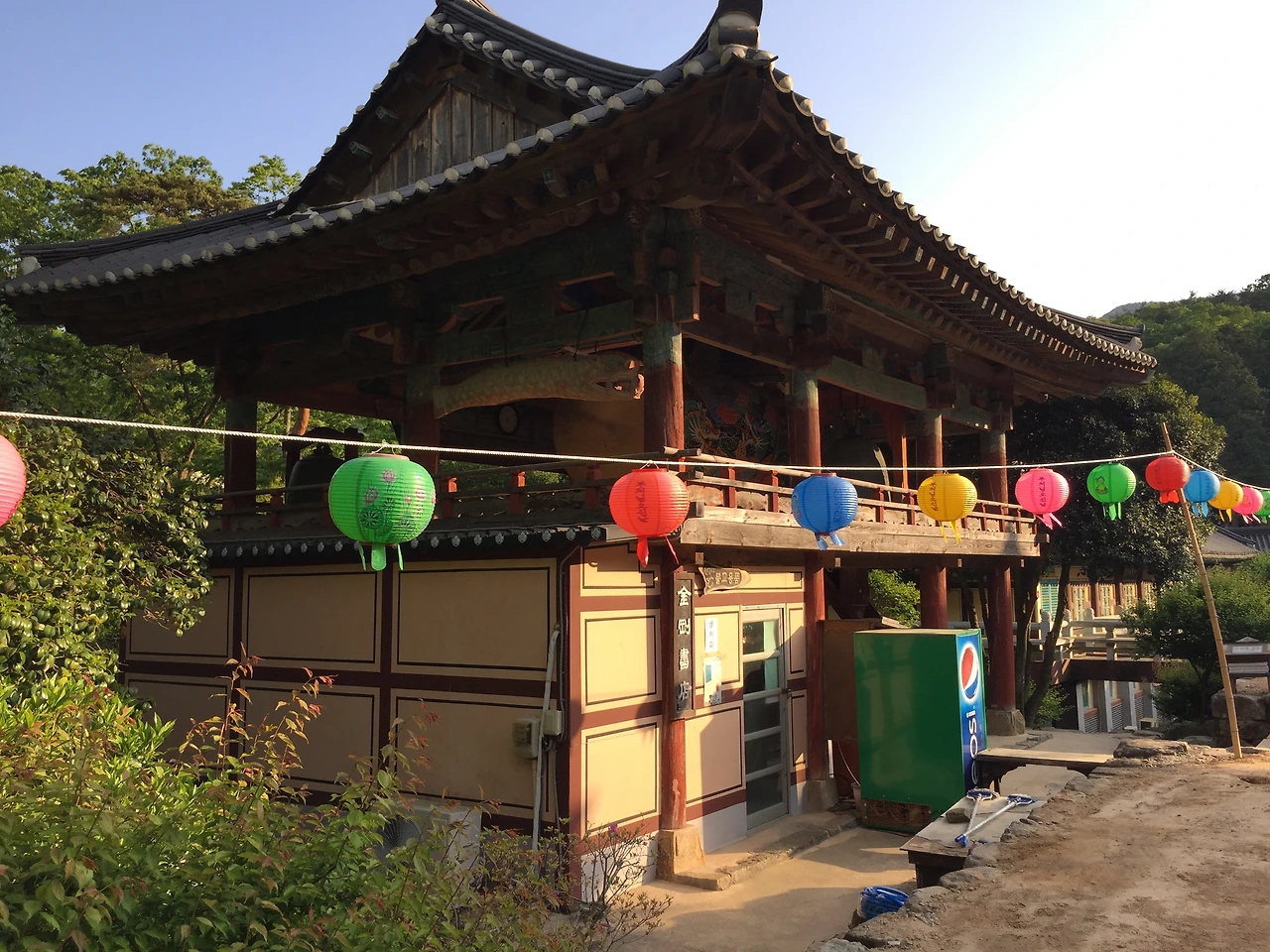 나무로 만든 큰 화장실이다. 중생들에게 번뇌 근심 걱정거리를 잠시 내려놓고 쉬어가라는 의미다. 화장실의 옛말 뒷간의 고어가 우에서 좌로 씌어있다. 해우소 창살 너머로 보이는 바깥 풍경이 마음을 평온하게 해 준다.