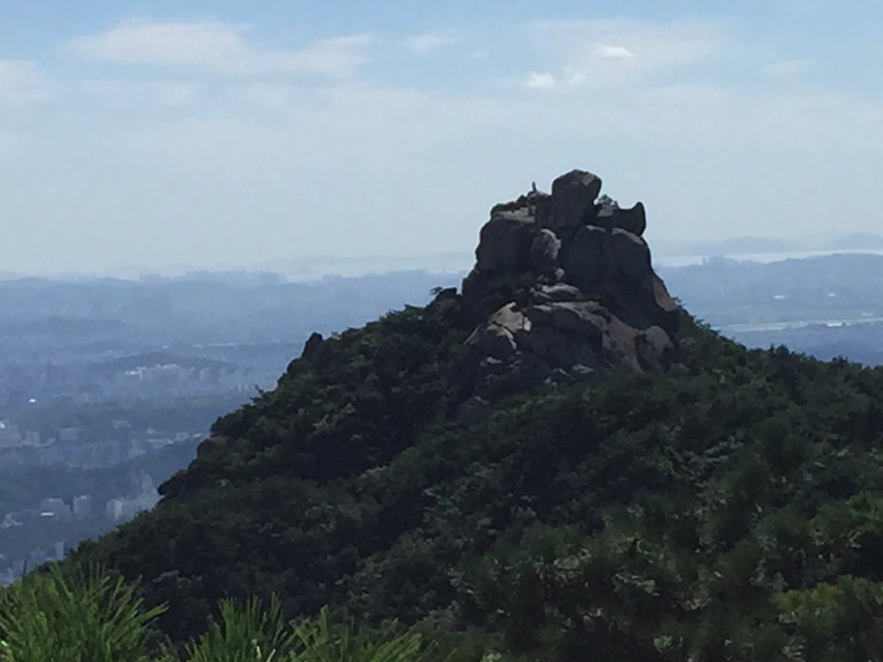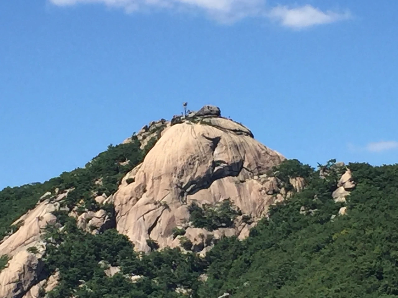 좌측에 족두리를 쓴 모양의 족두리봉이 보였다. 인수봉을 닮았다. 통째로 한 덩어리 바위산이다. 탕춘대 지킴터앞의 탐방객수를 자동으로 센다는 계수기를 통과했다. 서울시내 멀리 남산, 경기도 고양시 일대가 잘 보인다. 멀리 족두리봉 방향에서 오는 등산객들이 향로봉을 거의 45도 각도로 오르는 모습을 보고 놀랐다. 안전지지대 혹은 로프가 설치되어 있는지 궁금했다. 향로봉을 우회하여 비봉능선 방향으로 접어들었다.