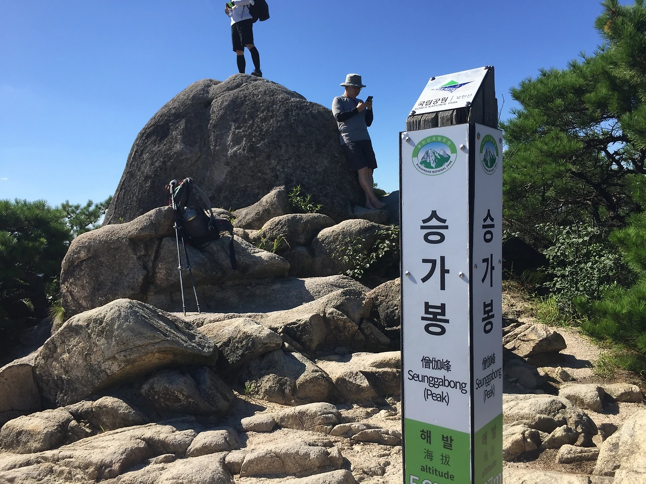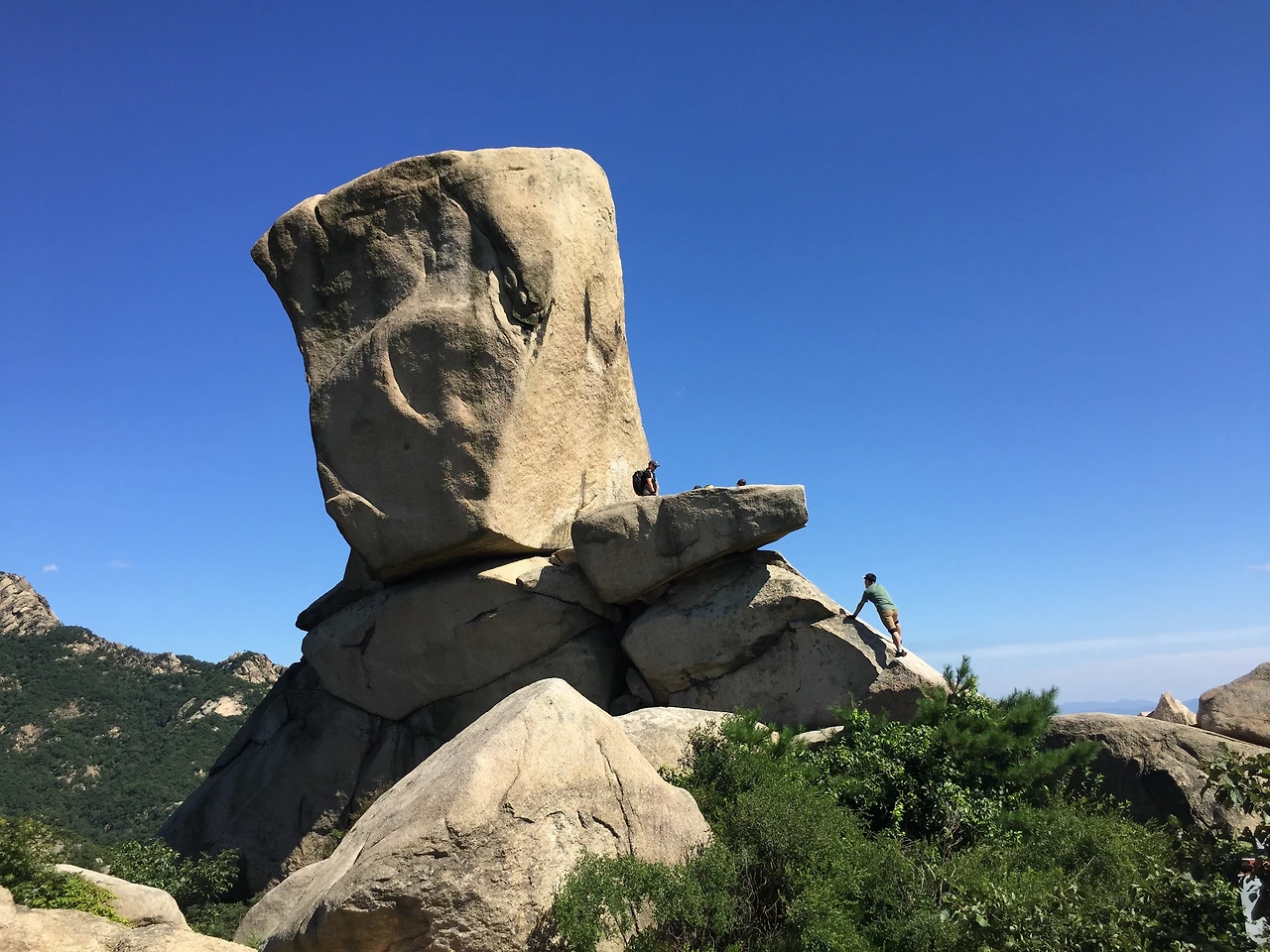 사모관대 혹은 사각형과 비슷하다고 이름 붙여졌다고 한다. 직사각형 바위가 어떻게 저기에 올라가서 오랜 세월을 버티고 있는지 경이롭다. 여기도 열혈 등산객들은 45도 경사진 바위를 타고 올라간다. 단체 사진도 찍는다. 물론 사모바위 위는 탕춘대성과 직접적으로 연결되는 코스는 아니다.