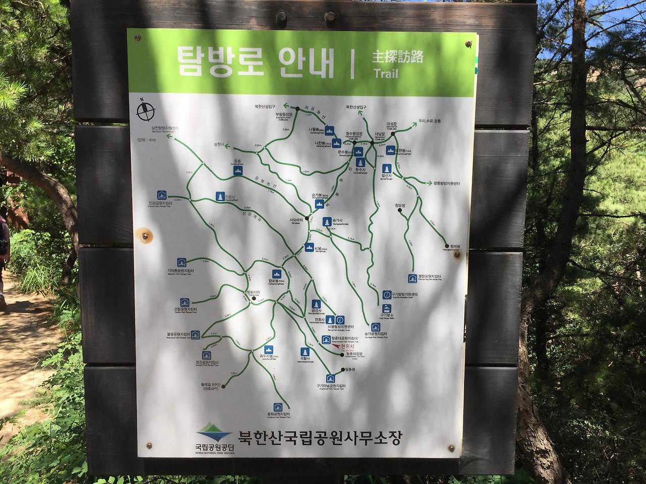 두 갈래 안내표지판이 있다. 쉬운 길과 어려운 길. 문수봉 뒤로 돌아 올라가는 쉬운 길을 택했다. 힘이 빠져서 이다. 무엇보다 목표지점 북한산성 행궁지까지 거리가 얼마나 남았는지 모르고 헤매고 있는 중이다. 힘을 아껴 두어야 한다.