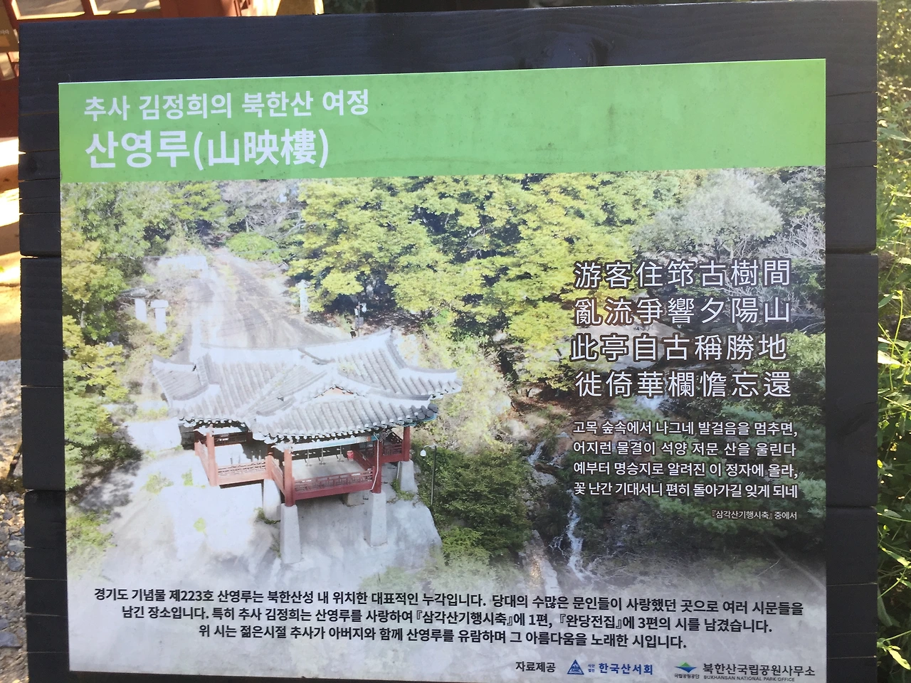 북한산성 내 대표적 누각이다. 추사 김정희가 방문할 때 시를 남겼다고 한다.