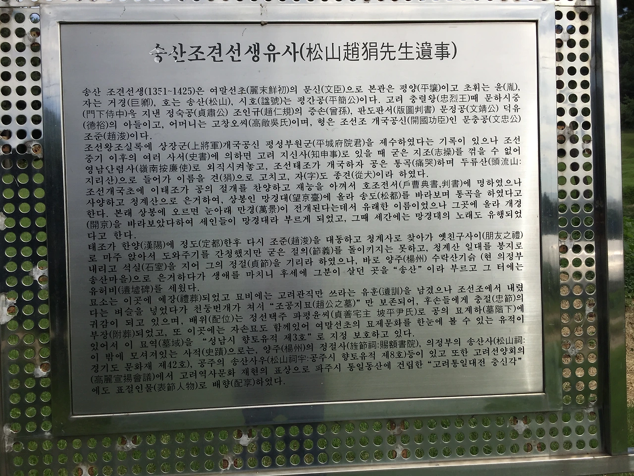 안내판에 상기에서 언급한 그의 행적이 자세히 적혀 있다.
