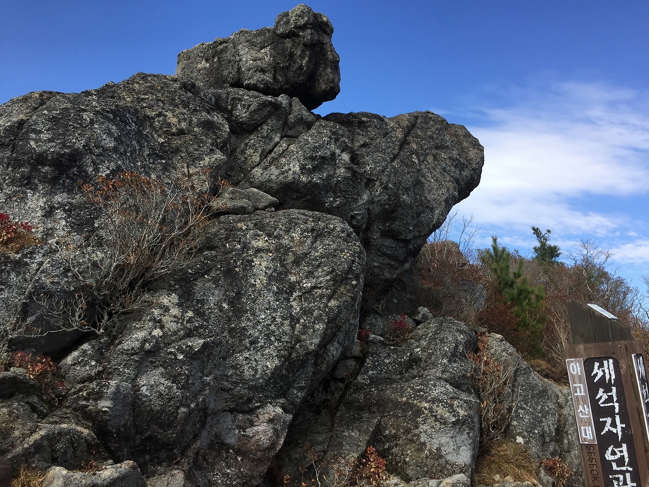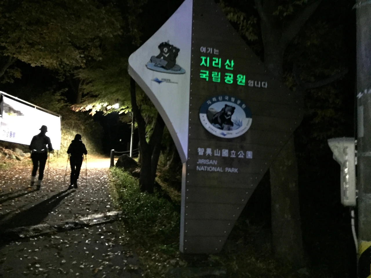 헤드랜턴을 장착하고 어두컴컴한 산길을 발 앞 돌계단만 보고 오르고 또 올랐다. 가파른 길이라 조금 앞선 등산객과의 거리도 불빛으로 가늠하면 상당히 멀어 보이고 조급해진다. 자기 페이스대로 평심을 유지하고 묵묵히 오르면 된다. 야간 산행은 발밑의 돌과 표지판에 집중해야 한다.