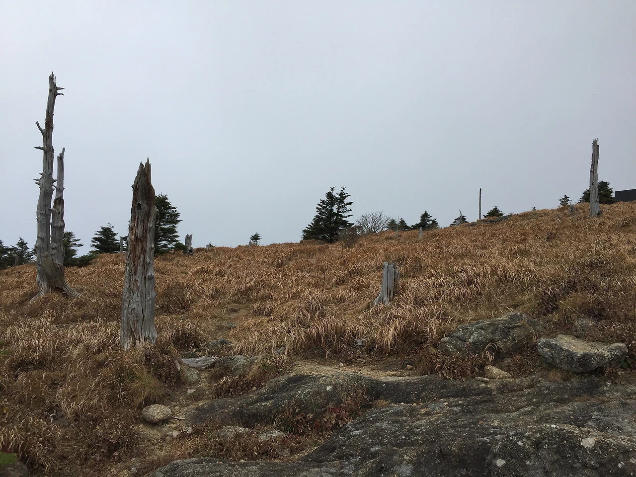 장터목 ~ 천왕봉 (1.7km, 2시간) 나무 계단을 올라가면 제석봉(1,808m)으로 오르는 돌계단이 나온다. 돌계단이 끝나면 구상나무와 고사목 군락이 있다. 이 풍경은 이국적이고 아름답다. 안타깝게도 1960년대 남벌꾼들이 이곳에 불을 질렀기 때문이다.
