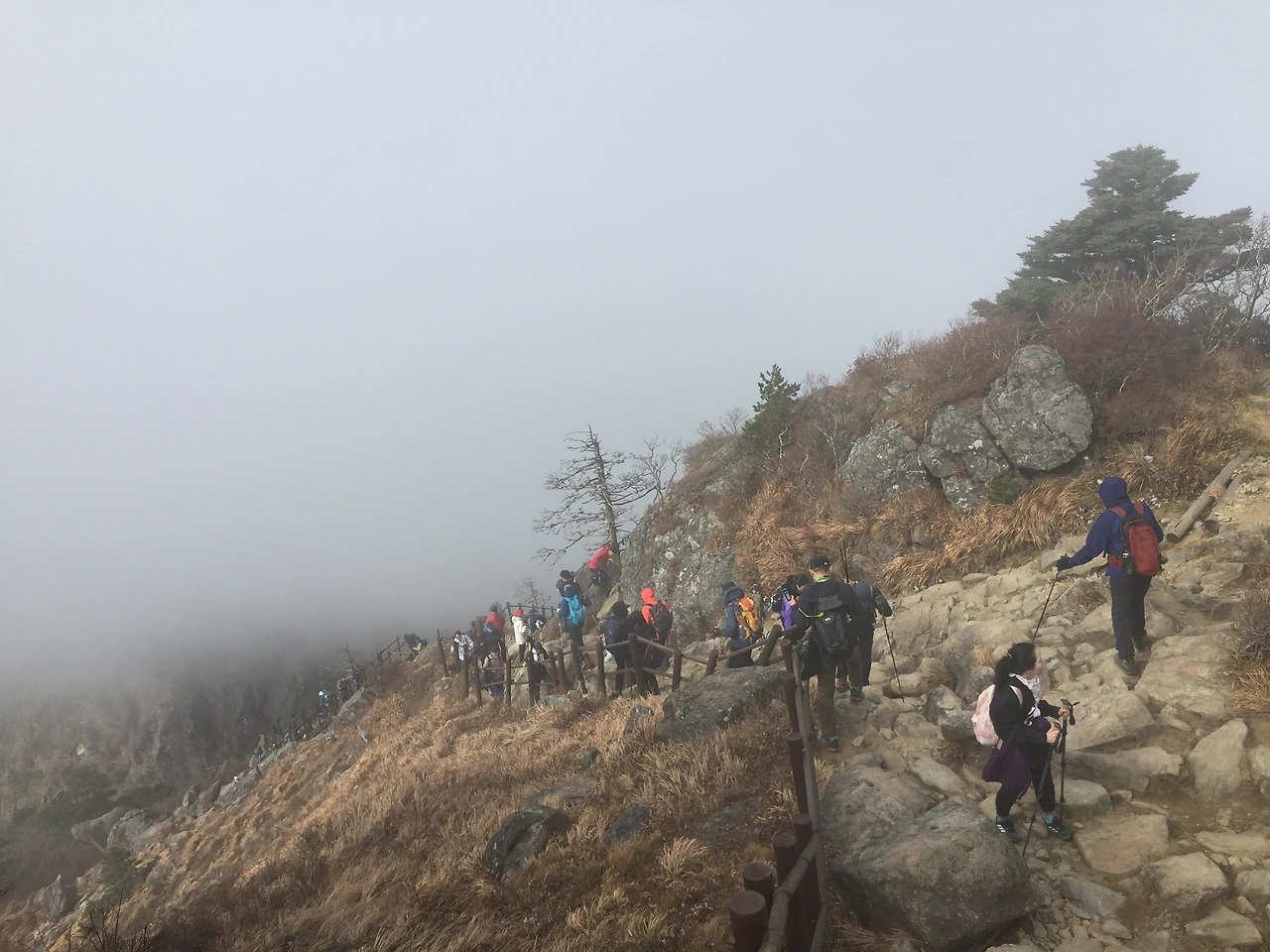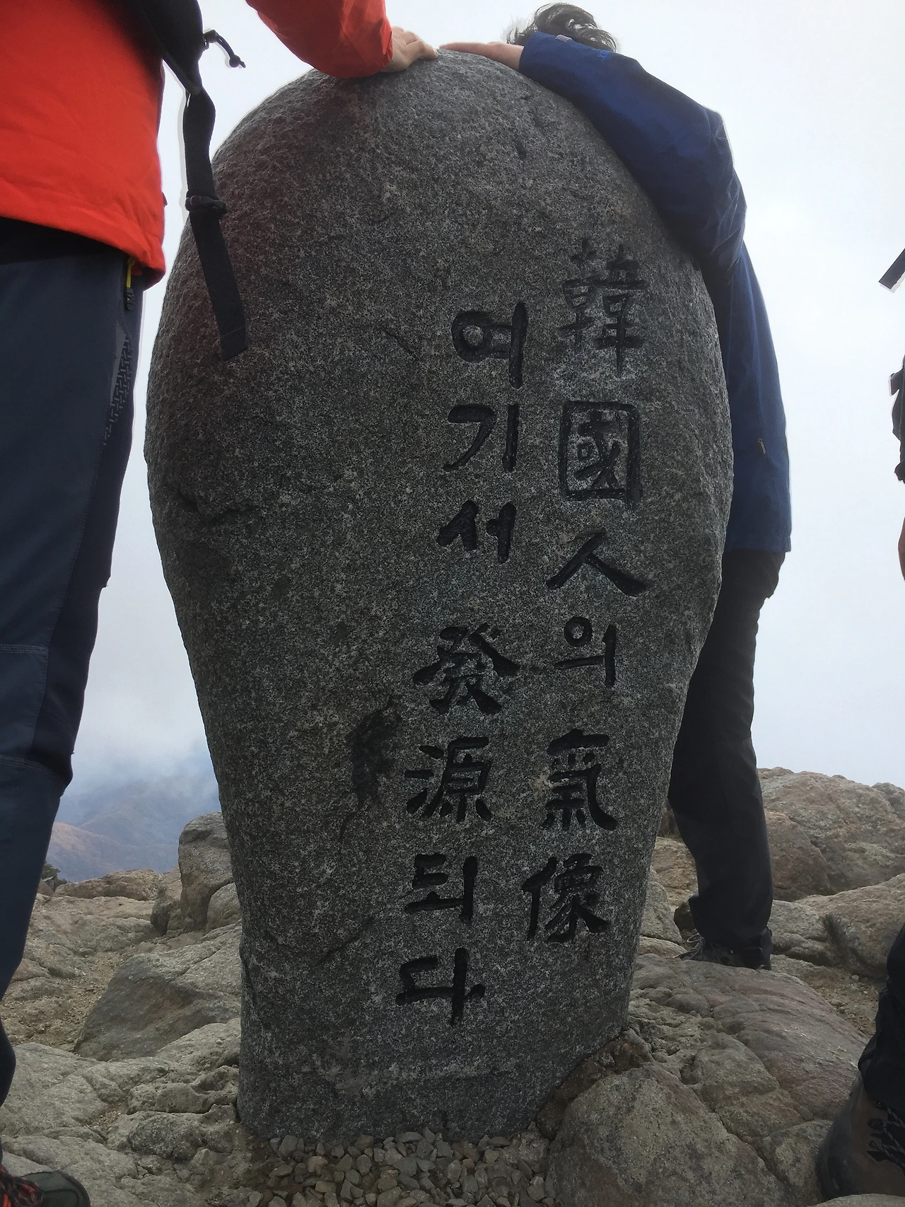 마침내 해발 1,915m의 천왕봉 정상에 도착했다. 천왕봉 정상석 뒤면에 '한국인의 기상 여기서 발원되다'라고 적혀 있다. 천왕봉에서 장터목으로 내려와 잠시 휴식을 취하고 연하봉으로 출발했다.