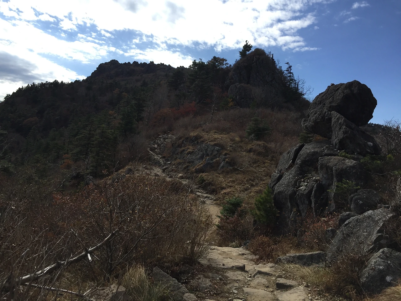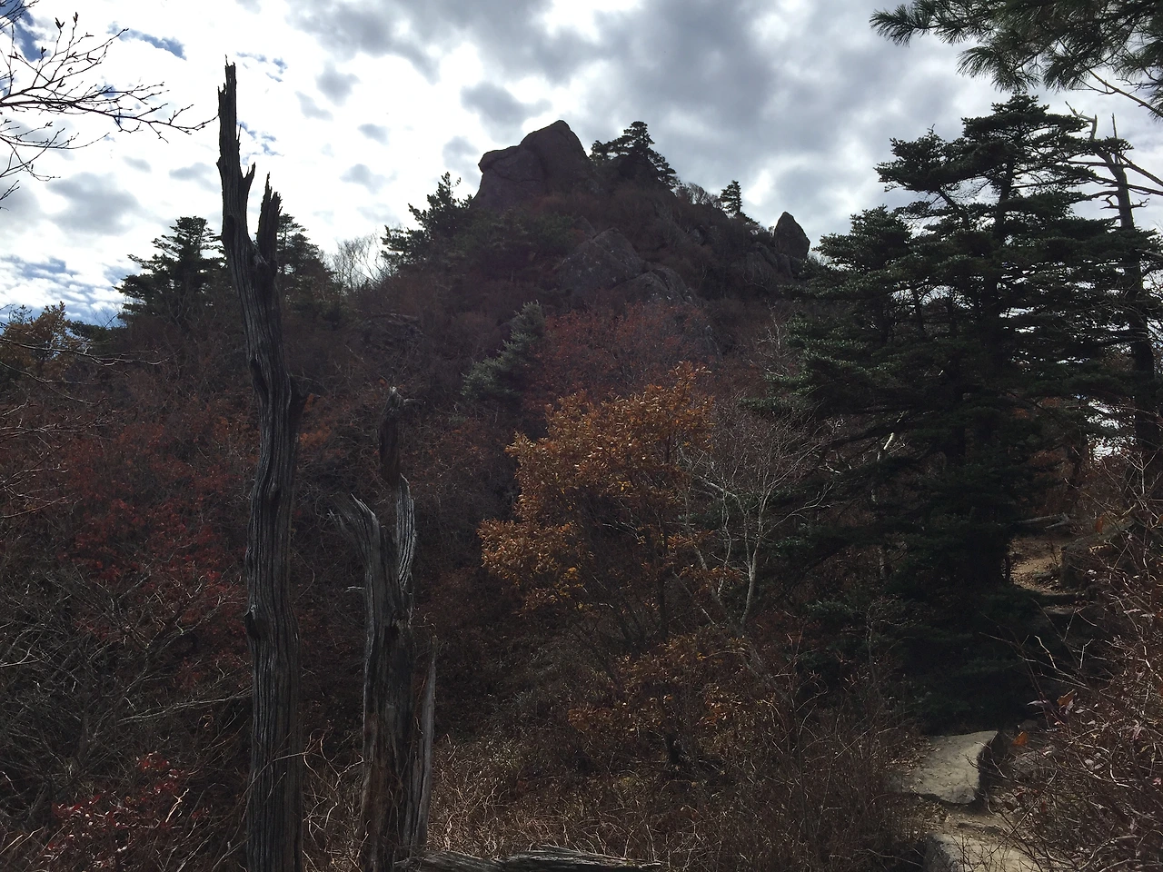 봉우리가 많아 정확히 어느 봉우리인지 알 수가 없었다. 반대편에서 오는 60대 친구들끼리의 대화가 재미있었다. “한 25년 전에 배낭을 둘씩이나 메고 이곳을 지났다”는 회고담이 들려왔다.