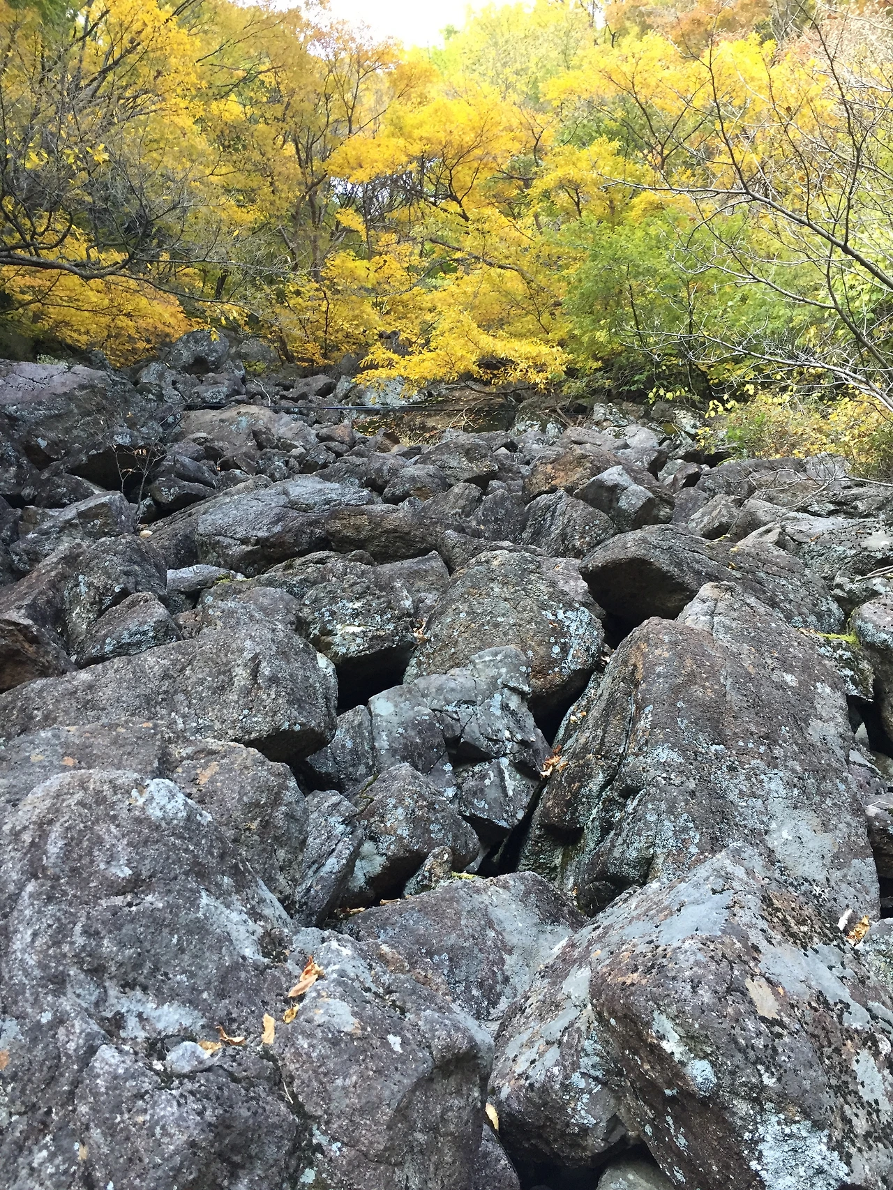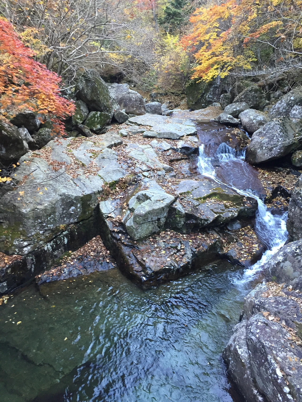 매스컴에서는 10월 셋째 주가 단풍 절정기라고 하였으나, 지리산 고지대에는 벌써 첫눈이 와서 이미 단풍은 끝물이었다. 세석 대피소에서 한참을 내려와 한신 계곡의 가내 폭포 근처에 다다라서야 겨우 가을 단풍을 맛볼 수 있었다.