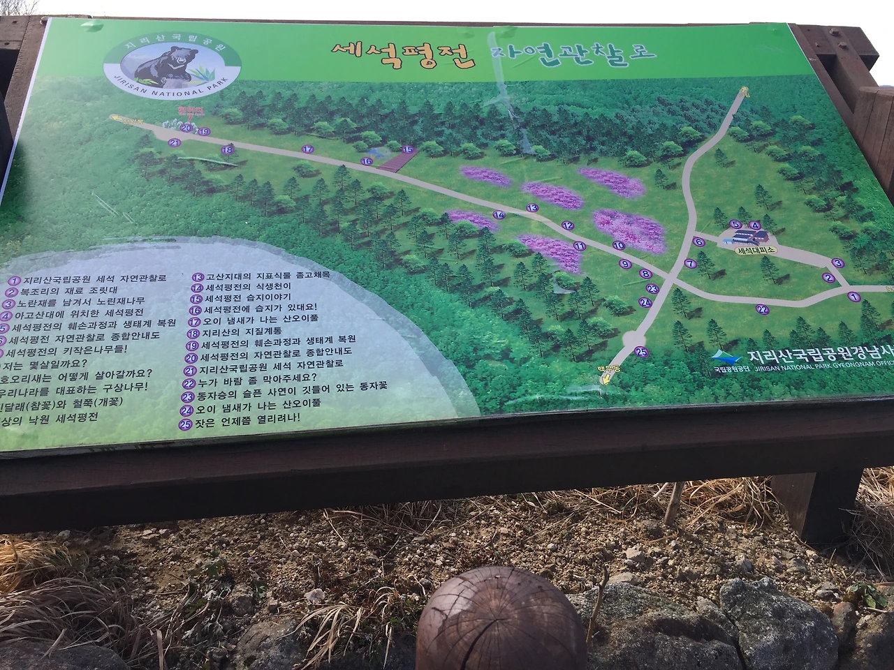 세석대피소 내려가는 길옆에 넓은 세석 평원이 있고, 습지대가 있다. 습지대 보완 공사가 진행 중이었다. 지리산 제6경 세석철쭉(細石)이 촛대봉 일대와 세석 평원에서 펼쳐진다. 수 십만 그루의 철쭉이 5월 초부터 6월 말까지 꽃망울을 터뜨린다고 한다.