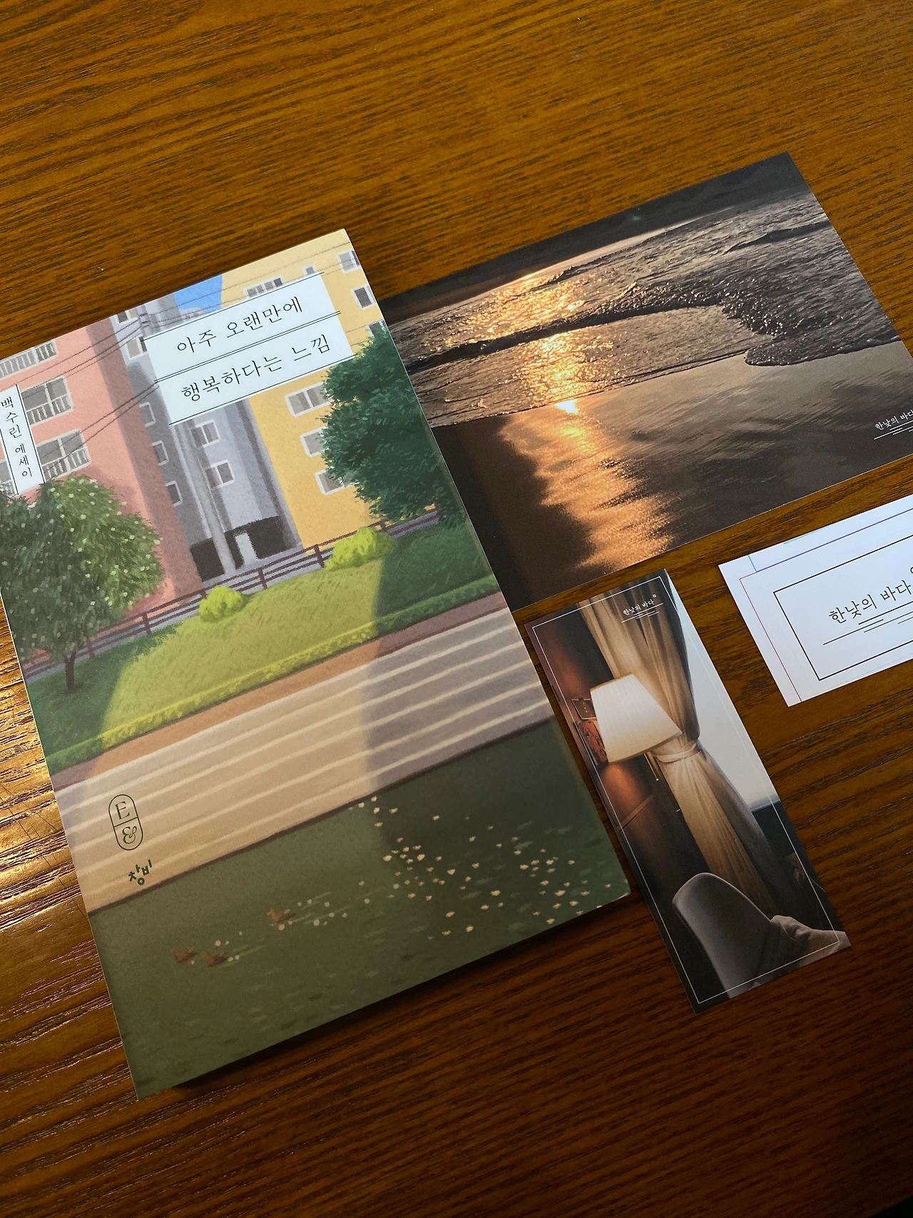 카페들과 해변 사이를 걷자 강릉에 온 게 너무나 실감 났다. ‘오길 잘했다’란 생각이 백 번 정도 들었던 것 같다. 날은 흐렸지만 주말이라 사람들은 많았다. 여행지에 오니 사람들이 많은 것도 괜히 더 좋아 보였다. 많은 카페들 중 하나를 골라 산미가 있는 핸드드립을 시키고, 소금빵도 하나 시켜 자리에 앉아 아까 책방에서 사 온 백수린작가의 <아주 오랜만에 행복하다는 느낌>을 읽었다. 제목부터가 너무 지금과 어우러져 나는 정말 아주 오랜만에 행복한 느낌을 받았다.