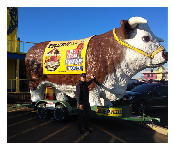 애머릴로는 가축사육 목장과 농장이 많은 곳이었다. 30분을 차로 달려 어느 한 레스토랑에 도착했다. 규모가 제법 큰 스테이크 전문 식당이었는데 입구 앞에 세워둔 모형 황소를 배경으로 사람들이 사진을 찍고 있었다. 평일 오후였음에도 길게 줄이 서 있을 정도로 꽤나 유명한 맛 집이었다. 스티븐과 난 한 시간 동안 실컷 고기를 먹으면서 대화를 나눴다.