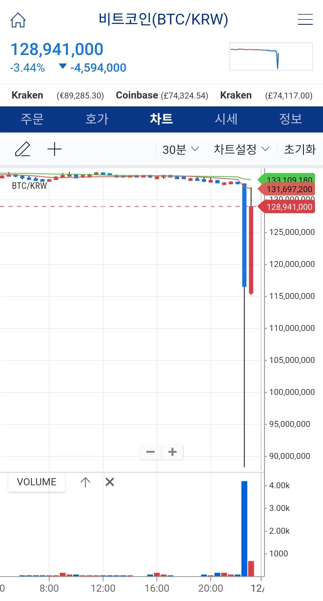 그런데 말입니다, 혹시 자산시장이 어떻게 되었는지 알고 계신가요. 오늘 아침 말고 어젯밤 그 순간, 탄핵이 발표되던 그 순간부터 3시간 동안 말입니다. 간략히 설명드리면 우선 비트코인은 빗썸에서 10%까지 하락했고 (한국 역프리미엄으로, 한국에 위치한 거래소에서 거래되는 비트코인은 환금성을 잃어버릴 것이란 우려에 해외 거래소에 비해 가격이 하락하는 것을 의미합니다.), 업비트에서 30%가량 하락했다가 30분 뒤쯤에 원래의 가격을 모두 회복했습니다.
