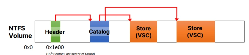 NTFS 볼륨의 $Boot의 마지막 섹터에서부터 15번째 섹터에 스토어가 위치함