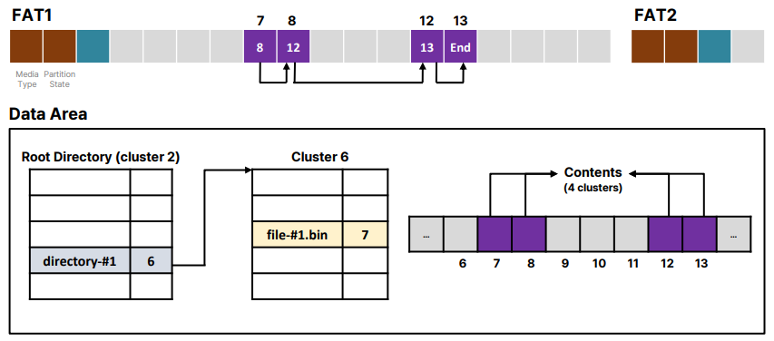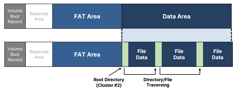 FAT 파일 시스템은 FAT 영역과 데이터 영역으로 구성된다.