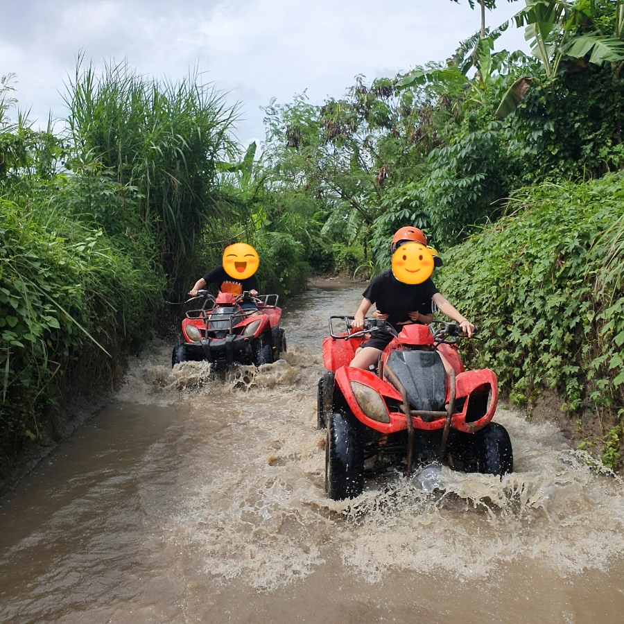 사누르에서 머무른 지 3일째 되던 날이었다. 새로운 것을 시도해 보고 싶었고 다음날 이동할 지역인 우붓에서 ATV나 래프팅이 가능하다는 것을 알게 되었다. 1일 1 수영을 하고 스노클링도 한지라 래프팅은 건너뛰고 ATV를 하기로 마음을 먹었는데 예약하기까지 고민을 무지 많이 했다. 리뷰에 초등학생들과 같이 탔다는 의견이 거의 없었기 때문이다. 구글 리뷰 중에는 ATV가 전복되어 뼈가 부러졌다는 이야기도 있었다. 생각이 많아졌다. 남편은 내가 둘째를 뒤에 태우고 운전하다 혹시라도 뒤집히면 큰일 날 수 있으니 하지 말자고 했다. 나도 다칠 위험이 있다면 굳이 돈 내고해야 하나 싶었다. 전날 폭우로 코스 근처 강의 수위가 높아진 것도 선택을 망설이는 또 다른 이유였다.