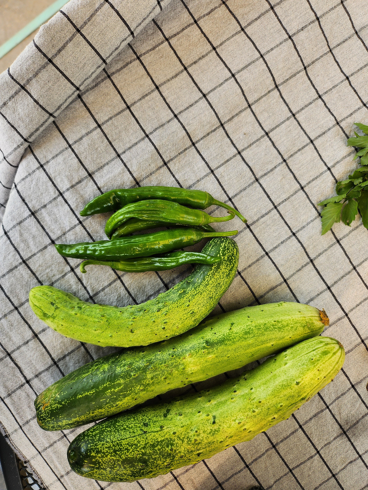 내 오이와 꽈리고추다. 청양고추는 아직 새끼손톱만 했다. 정글 같은 밭에서 튼실하게 자라줘서 더욱 감격스러운 첫 수확이었다. 수확물을 보니 미안해진다. 다시 걷기 좋은 내 밭을 만들어야 하는데, 언제 하러 가지.