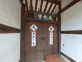 풍화당은 바람 風(풍), 화할 化(화)의 한자를 쓴다. 바람이 움직이면 변하고, 변하면 화한다. 정풍돈화(正風敦化)한다는 성인의 말씀도 있으니, 당 회원 먼저 老(노), 長(장), 忠(충), 孝(효), 悌(제)하면 온 사회가 본을 받아 미풍미화(美風美化) 한다는 뜻이다.