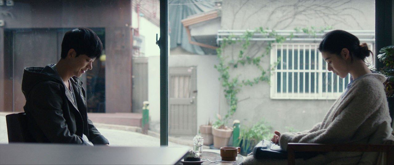 처음 카페에 들어온 것은 검은색 선글라스와 마스크로 얼굴을 가린 유진(정유미)이다. 한눈에 보아도 과하게 가린 모습을 보니 얼굴이 알려진 사람. 조심스럽게 꽃이 놓인 테이블에 앉아서 일행을 기다리는 유진. 그리고 그 일행이 뒤이어 들어온다. 그의 전 남자 친구 창석(정준원).