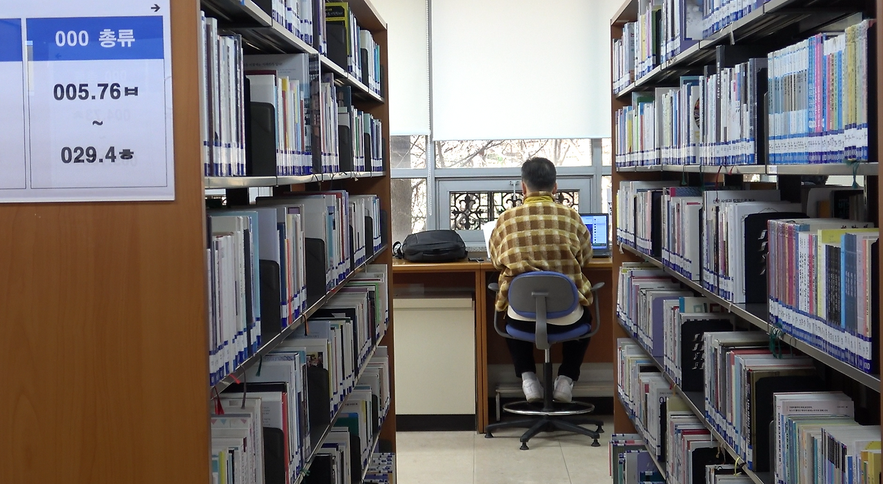 노트북은 꼭 노트북 전용 자리에서 이용해 달라는 안내문 앞에서 기어코 노트북을 켜 정치 유튜브를 보고 계시는, 아니 틀어놓고 꾸벅꾸벅 졸고 있는 아저씨. 잠은 집에 가서 자는 게 더 편하지 않을까 싶을 정도로 내내 엎드려 자는 학생. 엄마랑 같이 와 숙제를 하고 있는 초등학생. '일본어 첫걸음'이라고 쓰여 있는 책을 가져와 표지 뒷면의 지은이 약력을 아주 한참 동안, 손가락을 따라 읽으며 살펴보시는 할아버지까지. 평일 도서관의 풍경은 느릿느릿했다. 세상만사 복잡한 일들로부터 어떤 막으로 단절되어 있는 공간처럼 느껴질 정도로 느릿했다. 책에 파묻히기엔 더할 나위 없이 완벽한 곳이다.