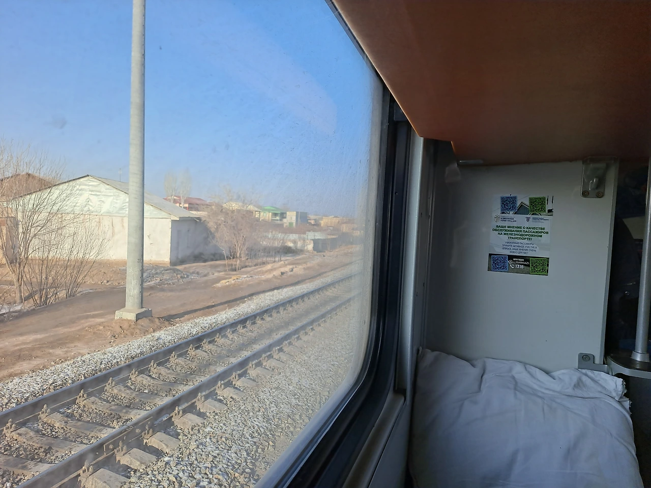 정적만이 감도는 새벽, 히바 행 열차에 올라탔다. 모든 승객들이 잠들어 쥐 죽은 듯 조용한 기차는 내 미처 예상치 못했다. 승객도 많은데다가 비좁고 어두워서 도무지 내 자리를 찾기가 불가능해보였다. 나는 통로에 망연자실한 채로 서 있었다. 기차가 곧 출발한다는 안내방송이 기차역에 울려 퍼졌을 때, 마침 한 승무원님이 구세주처럼 내 쪽으로 다가오고 있었다. 승무원님의 뒤를 따라 조심조심 객실로 들어섰다. 좁은 통로를 가운데로 해서 각각 위, 아래에 간이침대가 배치되어 있었다. 무슨 기차가 식당 빈 그릇 반납하는 곳같이 생겼나 생각했다. 첩첩이 쌓아올린 식판 같은 인상을 주는 이런 독특한 새벽기차는 인생처음이었다.