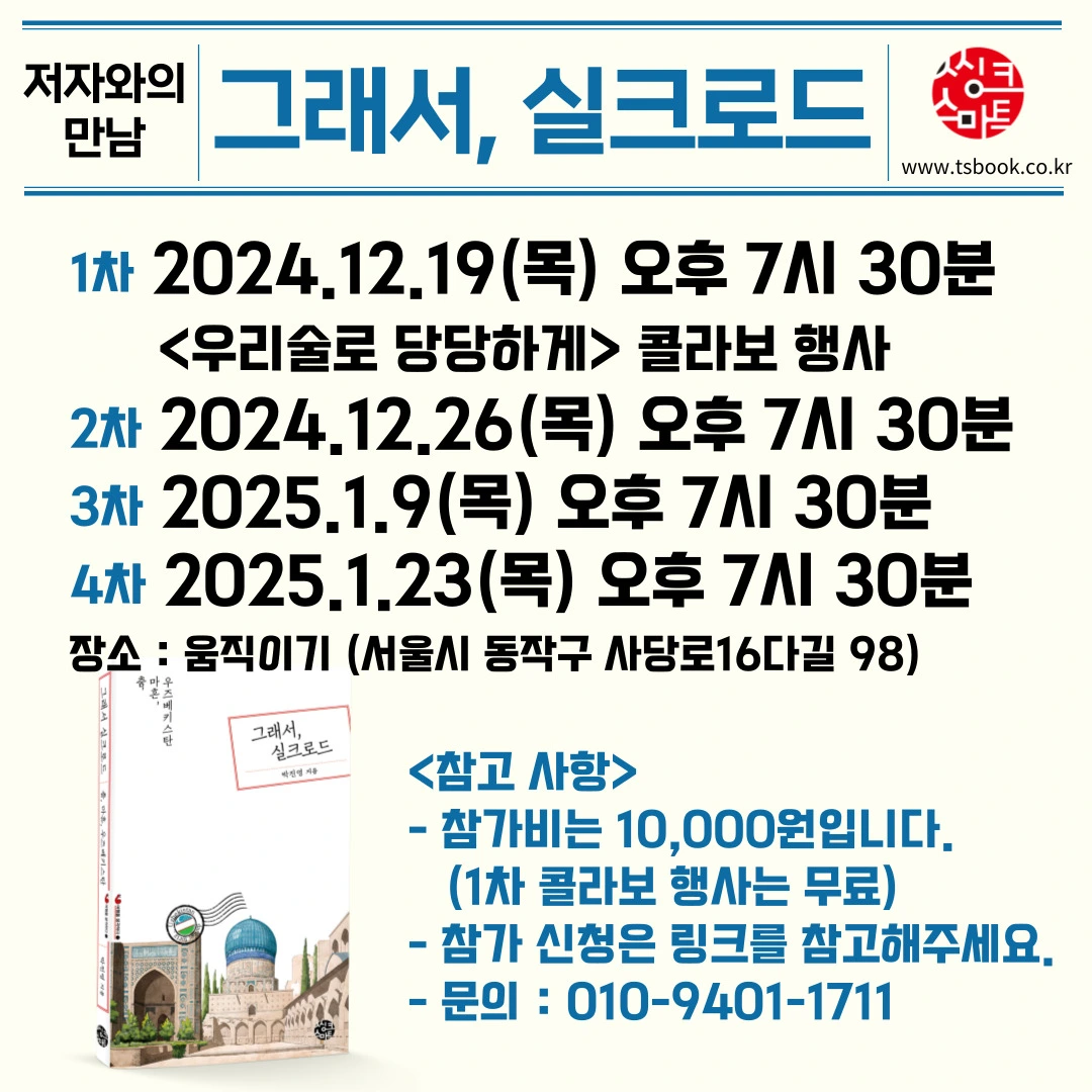저의 첫 책 <그래서, 실크로드> 책출간 이벤트로 진행한 원데이 특강에 한파를 뚫고 여러 분들이 와주셨습니다. 현대무용을 처음 해보시는 분들을 위해서 간단하게 현대무용이 무엇이고, 춤이 무엇인지에 대한 저의 소견을 공유하면서 천천히 수업을 시작하였습니다.