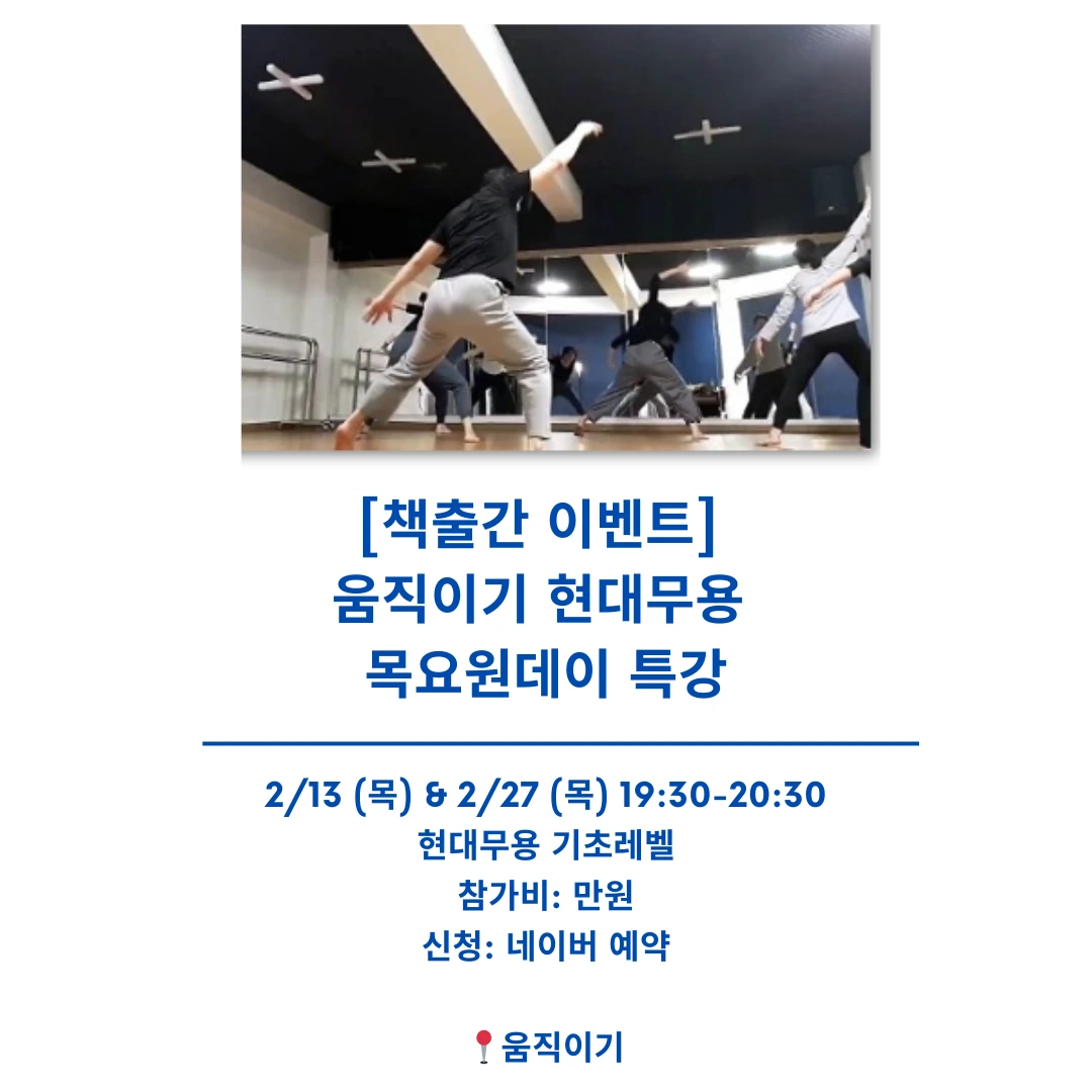 책출간 이벤트 현대무용 원데이 수업으로, <움직이기>에 여러 분들이 와 주셨습니다. <움직이기> 공간은 사실 저에게 개인적으로 의미가 있는데요. 재작년 이맘때쯤, 2023년 2월 저는 제 인생의 가장 밑바닥에 왔다고 생각했습니다. 모든 피와 살과 땀을 쏟고, 묵묵하게 길을 가면, 마흔살 즈음에는 뭐라도 될 줄 알았고, 뭐라도 남을 줄 알았습니다.(그때는 그렇게 생각했습니다) 그러나 저는 아무것도 이루지 못했고, 아무것도 되지 못했습니다.