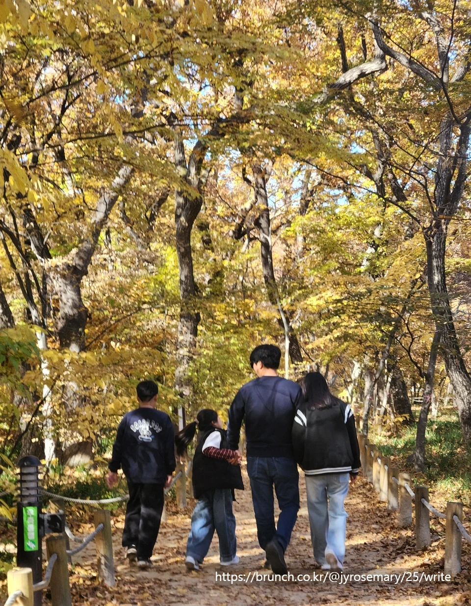 다시 찾은 가을 숲길을 걷는 남편과 아이들의 뒷모습이다.