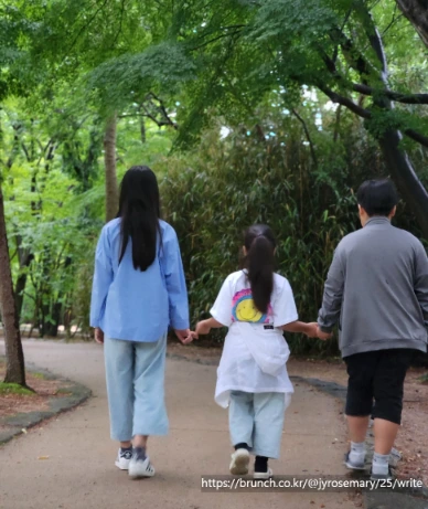 요즘 사춘기가 시작된 건지 무뚝뚝한 첫째 아이의 표정이 뒷모습에서도 느껴지는 것 같고, 남편과 두 딸들은 웃음이 보이는 것 같다. 이 사진을 찍기 위해 나는 얼마나 친절한 표정으로 부탁을 했던가.