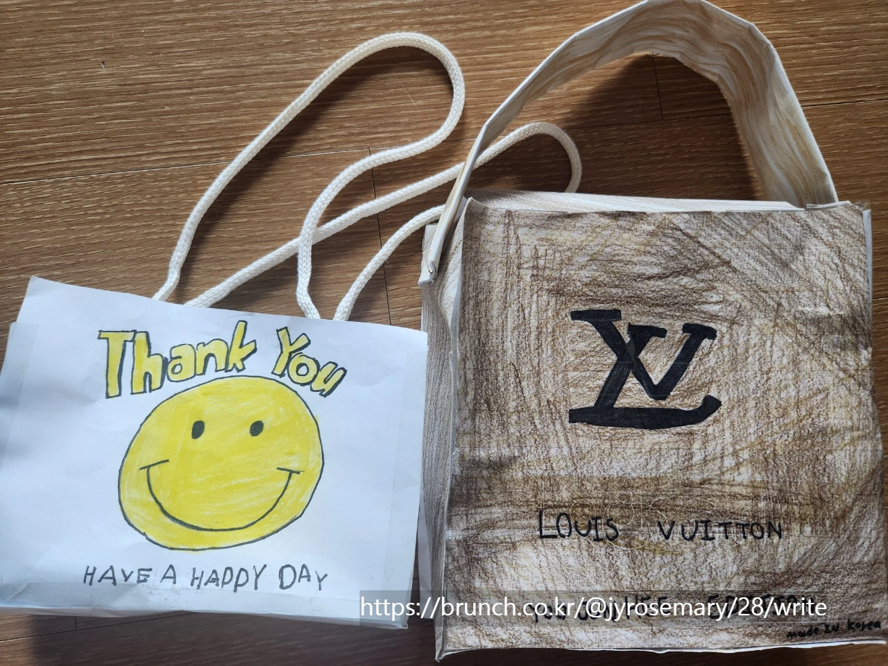 비록 종이로 만들었으나 꼼꼼한 디테일까지 챙겨서 제법 잘 만들었다. 무려 둘째 이름이 새겨진 24년 가을 시즌 한정판 가방이다.