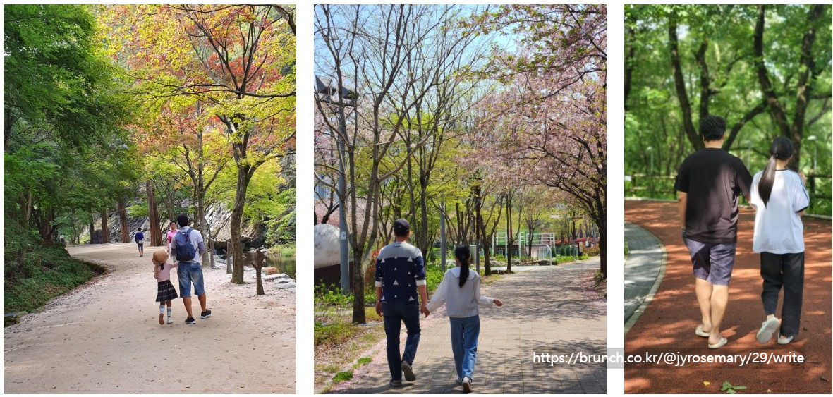주변을 구경하면서 천천히 가고 싶은 나를 첫째와 셋째가 빨리 가자고 재촉한다. 남편과 둘째는 늘 저만치 걸어가고 있다.