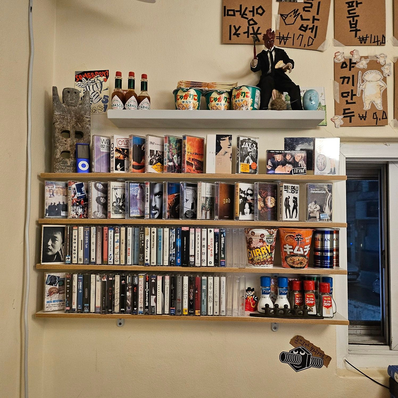 매장에 들어가고 나서야 여기가 일본식 선술집이라는 걸 처음 알았다. 고즈넉한 분위기에 오래된 카세트테이프까지 진열되어 있어서 영락없이 포장마차라고 생각했는데. 막상 실체를 알고 바라보니, 더할 나위 없는 일본식 선술집이 되었다.