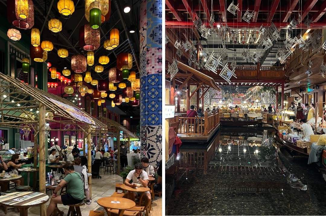 매장 한가운데 흐르는 강을 보고 있으면 내가 있는 곳인지 백화점인지, 야시장인지 착각하게 된다. 멀리까지 오느라 고생했으니 돼지고기 꼬치와 팟타이 한 접시를 호로록하고 매장을 마저 둘러보면 시간 보내기 참 좋다.