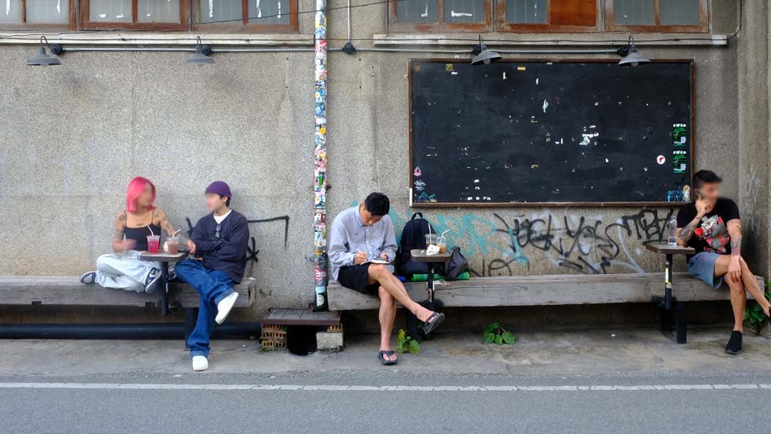 이 젊은이들은 다들 어디 있다가 나왔을까, 오픈된 공간에 자유롭게 앉을 수 있는 이 카페는 이 지역 젊은이들의 핫한 아지트 같은 공간으로 보인다. 2층에는 간간히 전시도 열고 있다. 벽을 등진 의자에서 선선해질 때까지 길거리의 사람들을 한참 구경하며 그림을 끄적이다 일어났다.