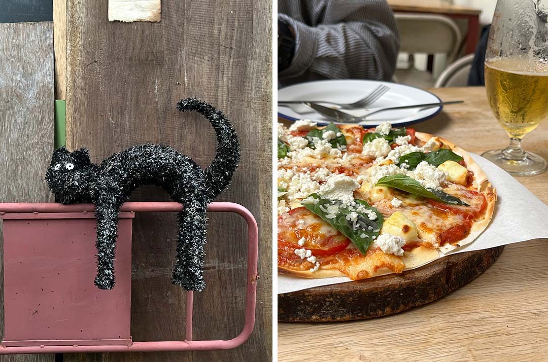 고양이 인형, 예쁜 도기, 귀여운 가게들을 둘러보며 쭉 들어오면 피자가게 맛집이 나온다.