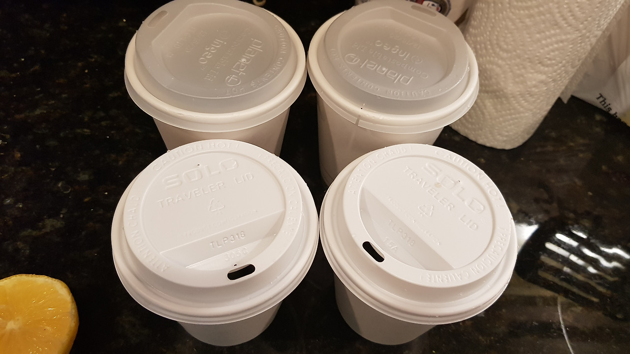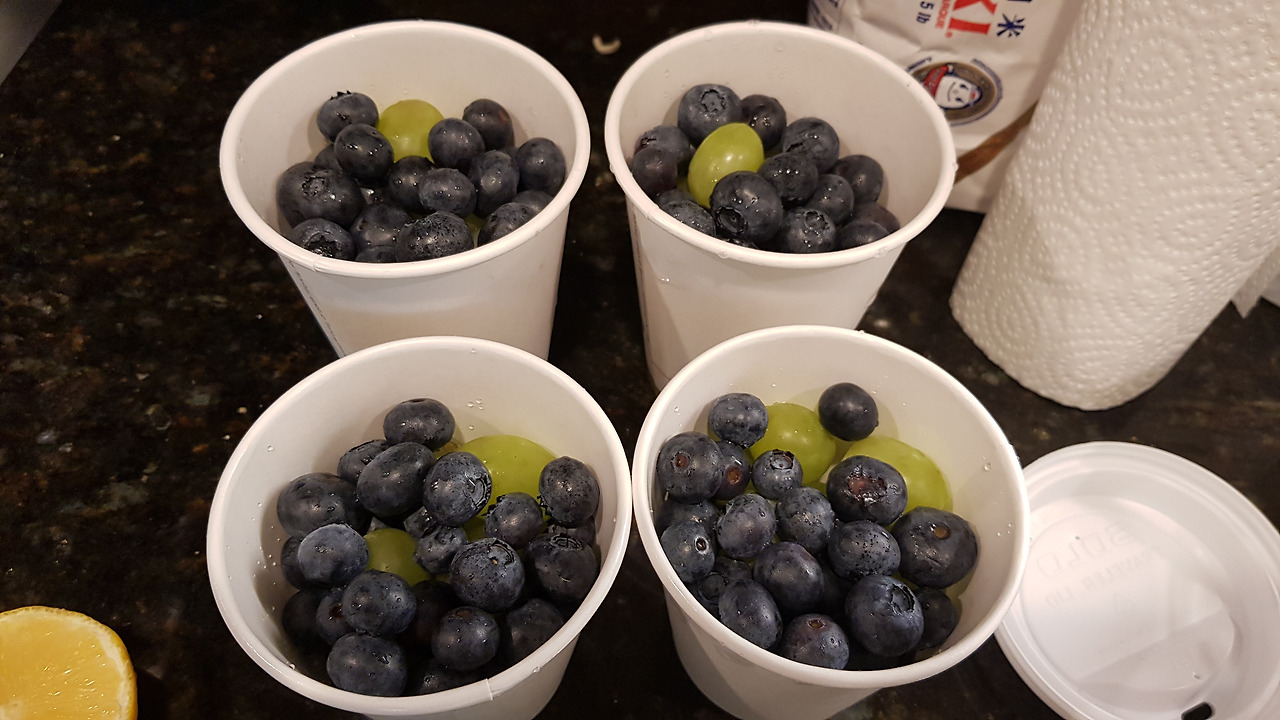 숙소에 매일 비치되던 커피컵 모아서 간식용 과일컵으로 재탄생