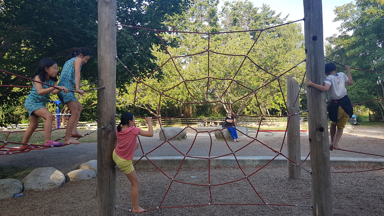 Terra Nova Rural Park 안에 있는 놀이터다. 구글에서 웅장한 미끄럼틀 사진을 보고 한번 가보고 싶다는 생각을 했었는데 큰딸이 여길 찜해놨다며 가자고 해서 별 정보 없이 출발했다. 다행히 코스트코에서도 14분 거리. 뭔가 섬의 가장자리 길을 따라 달리고 있다는 생각은 했는데 도착지에 다다르니 풍경이 너무 이뻐서 깜짝 놀랐다.
