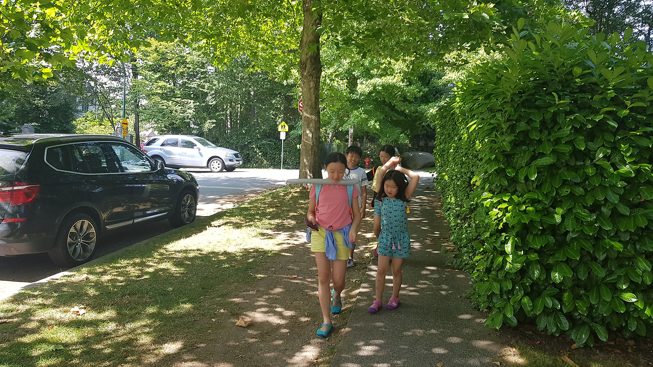 머나먼 캐나다까지 영어 좀 써보겠다고 캠프에 들어왔는데.. 또래 외국인 친구 사귀라고 수업도 바꿨는데... 결국 여자 친구 2명이 있다던 수업의 그 친구들은 한국인이었던 것... 가다가 다시 돌아보니 셋이 앉아서 수다를 떨고 있길래 둘째에게 영어로 얘기하라고 무언의 바디랭귀지로 신호를 보내는데 옆에 있던 친구들이 다시 내게배꼽 인사를 한다. 웃으며 인사하고 돌아서는데 속으로 차라리 중국 아이들이라도 괜찮은데... 싶었지만 둘째의 운명이겠거니 싶다.