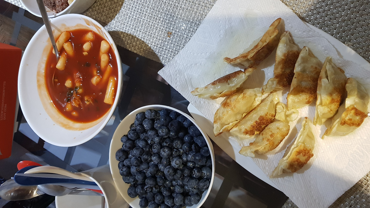 오늘의 야식은 분식~ 한국에서 가져온 실온 떡볶이에 코스트코 군만두! 그리고 하루를 열심히 보낸 스스로에게 주는 선물, 맥주 한 캔!